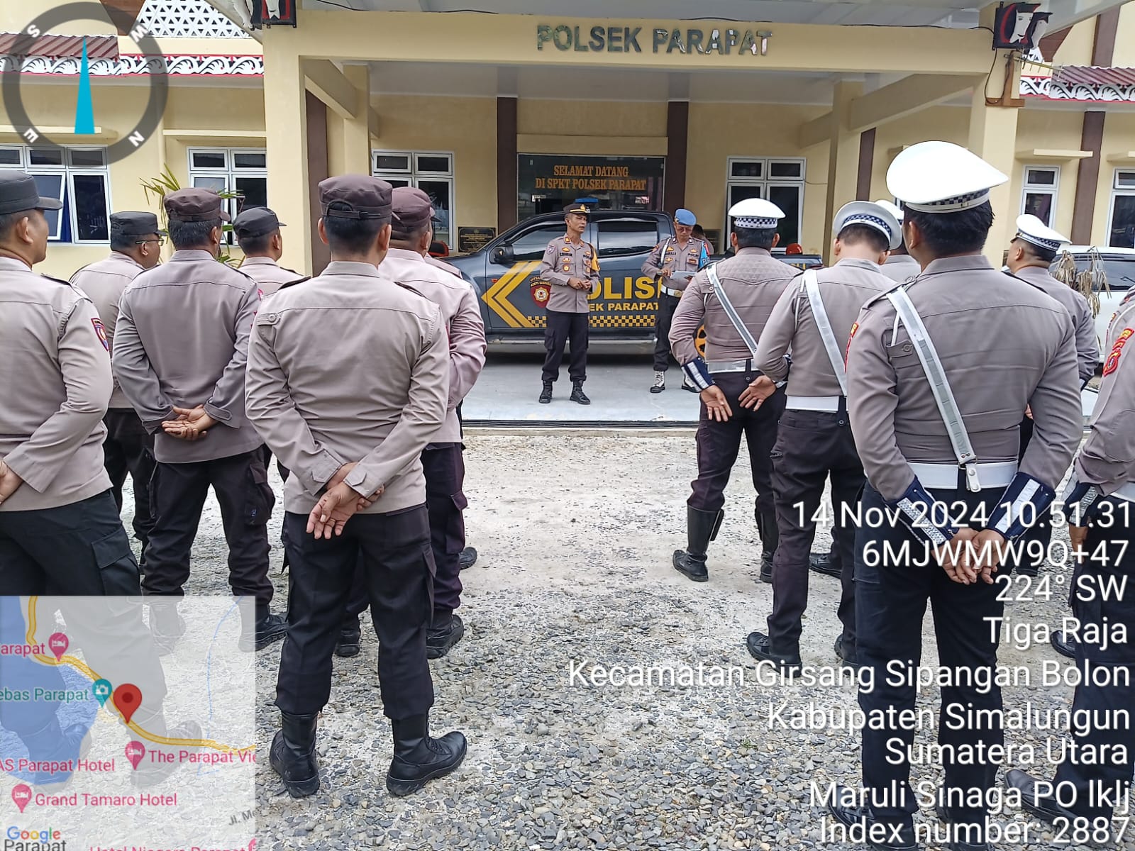 Pengamanan ini dimulai pada hari Kamis, 14 November 2024, sekitar pukul 10.30 WIB, bertempat di Lapangan Apel Polsek Parapat. Para personel Polres Simalungun yang terlibat dalam kegiatan ini terlebih dahulu mengikuti apel yang dipimpin oleh Kasat Binmas untuk menerima arahan.