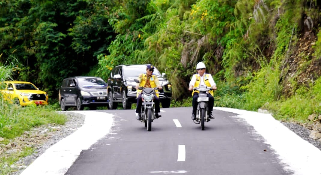 Selanjutnya, dengan mengendarai sepeda motor milik warga, Bupati bersama Kadis PUTR mengecek jalan yang sudah di perbaiki sepanjang 5.9 Km.(iw)