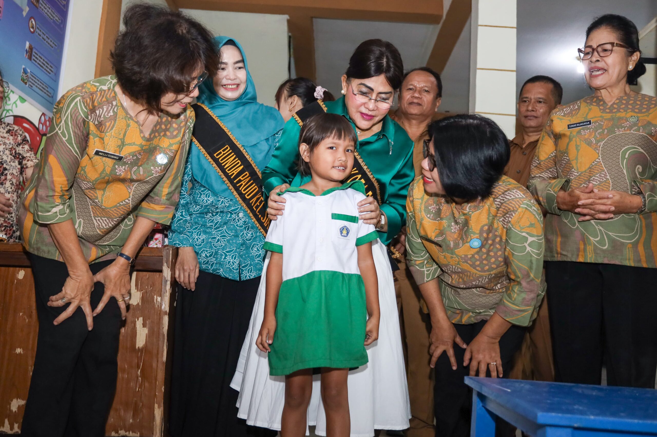 Kehadiran Ny Liswati di setiap PAUD SAB disambut antusias murid-murid dan para guru.