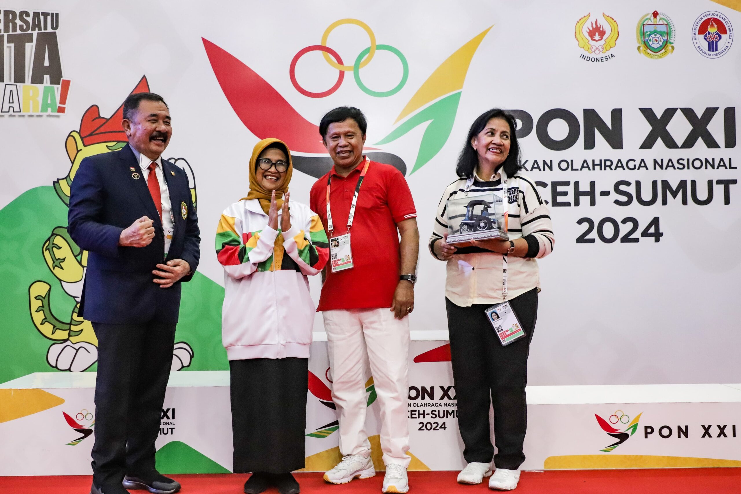 Selanjutnya dr Susanti bersama Komaruddin selanjutnya menyerahkan medali kepada para atlet pemenang cabor tinju. Pada kesempatan tersebut, dr Susanti juga menyerahkan cenderamata kepada petinju legendaris Ellyas Pical.