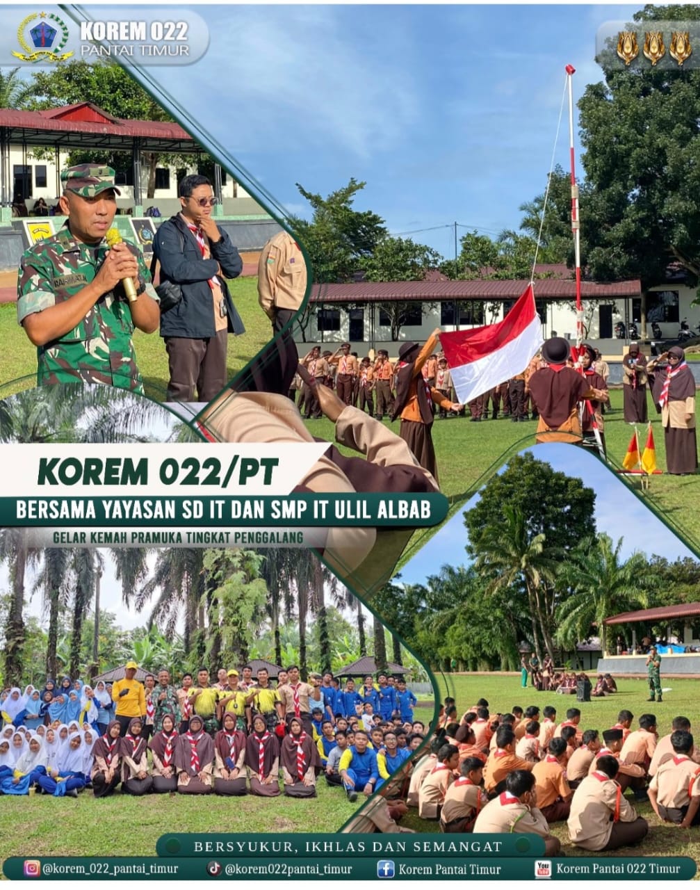 Korem 022/Pantai Timur bersama Yayasan SD IT dan SMP IT Ulil Albab Pematangsiantar menyelenggarakan kegiatan Kemah Pramuka Tingkat Penggalang Gabungan SD IT dan SMP IT Ulil Albab Pematangsiantar bekerjasama dengan Korem 022/Pantai Timur.