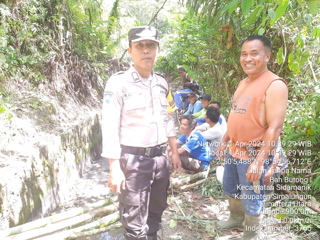 Dengan berbekal informasi yang diterima via WA dari Pangulu Kebun Sayur Bah Butong, Mesno, Bhabinkamtibmas Bripka Harjanto Gultom, bersinergi dengan Babinsa, dan masyarakat setempat termasuk Faber Damanik dari PSDA Sidamanik untuk mengatasi masalah ini.