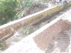 Diketahui bahwa longsoran ini pertama kali ditemukan pada Jumat, 29 Maret 2024, sekitar malam hari, menciptakan kesulitan bagi warga Nagori Kebun Sayur Bah Butong, terutama dalam mendapatkan akses ke air untuk keperluan MCK dan mengairi lahan persawahan yang luasnya mencapai ± 900 hektar. Longsoran yang berpanjang ± 7m dengan kedalaman ± 8m ini memerlukan tindakan segera.