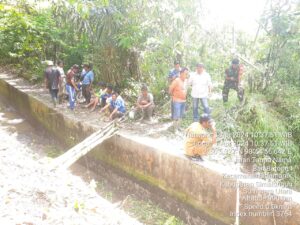 Polsek Sidamanik Polres Simalungun bersama warga setempat, Senin, (1/4/2024), melakukan inspeksi dan gotong royong sebagai respons atas longsor yang terjadi pada saluran irigasi di Bah Tangan I, Nagori Bah Butong I, Kecamatan Sidamanik, Kabupaten Simalungun.