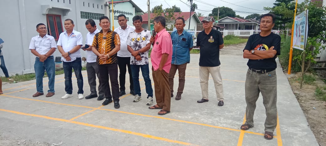 Calon Wali Kota Pematangsiantar nomor urut 2 Mangatas Silalahi, S.E – Dr. Ade Sandrawati Purba, S.H, M.H, memberikan bantuan pembangunan lapangan bulu tangkis di kawasan Perumahan Martoba Green City, Kelurahan Pondok Sayur, Kecamatan Siantar Martoba.