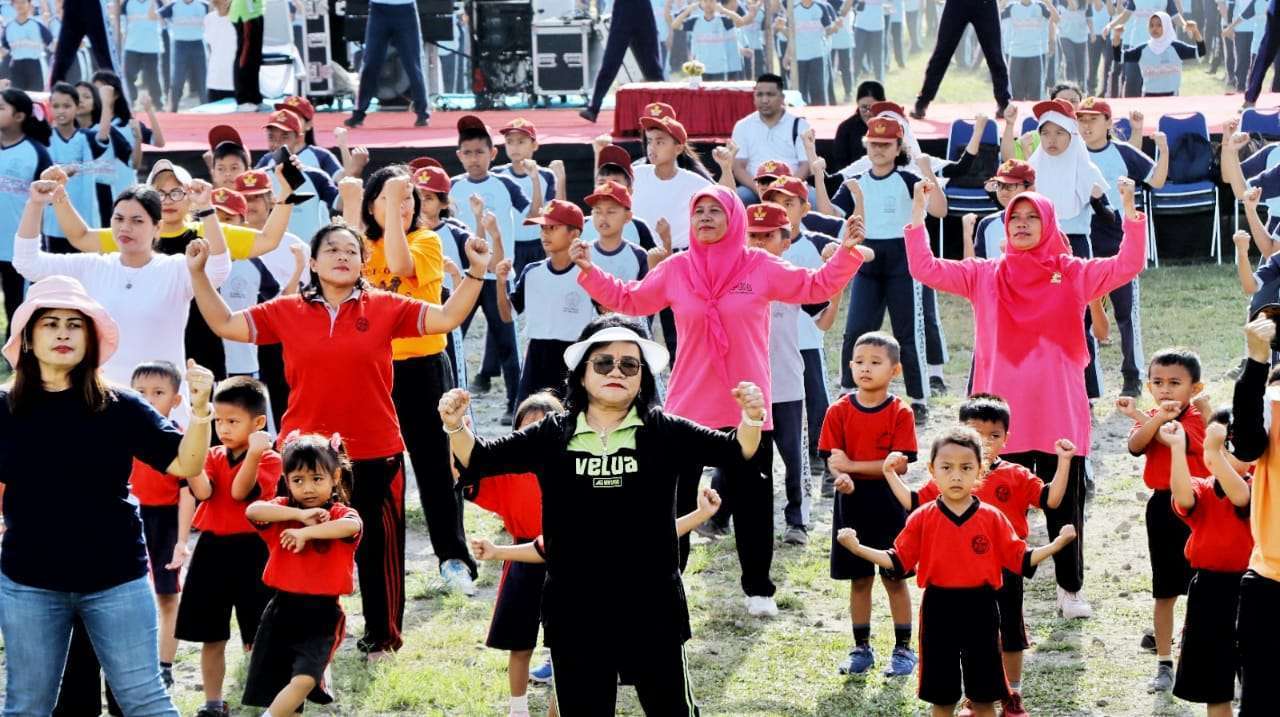 Dalam rangka memeriahkan kegiatan nasional Gebyar Sekolah Sehat Pemerintah Kabupaten (Pemkab) Simalungun melalui Dinas Pendidikan melaksanakan kegiatan senam massal pelajar dipusatkan di lapangan SMP Nageri 1 Pematang Raya, Simalungun, Jum’at (28/7/2023).