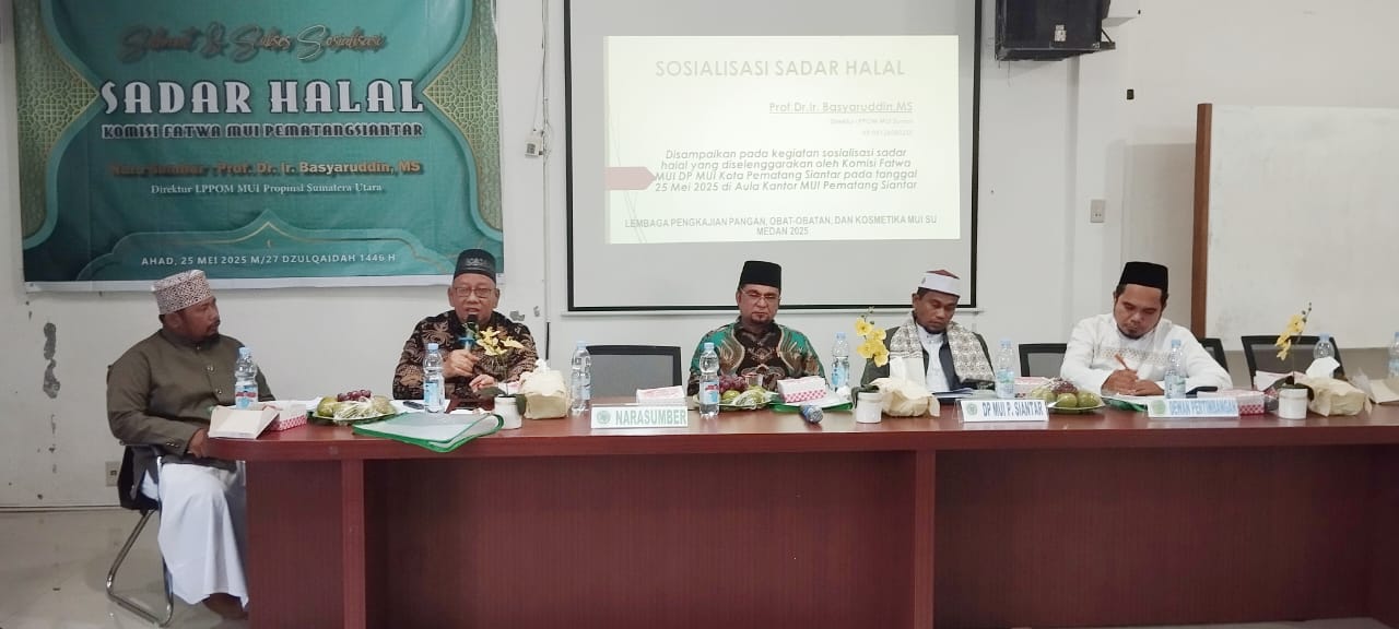 Majelis Ulama Indonesia (MUI) Kota Pematangsiantar melalui Komisi Fatwa gelar sosialisasi Sadar Halal. Berlangsung di kantor MUI Pematangsiantar, Jalan Kartini, Kota Siantar, Minggu (25/5/2025).