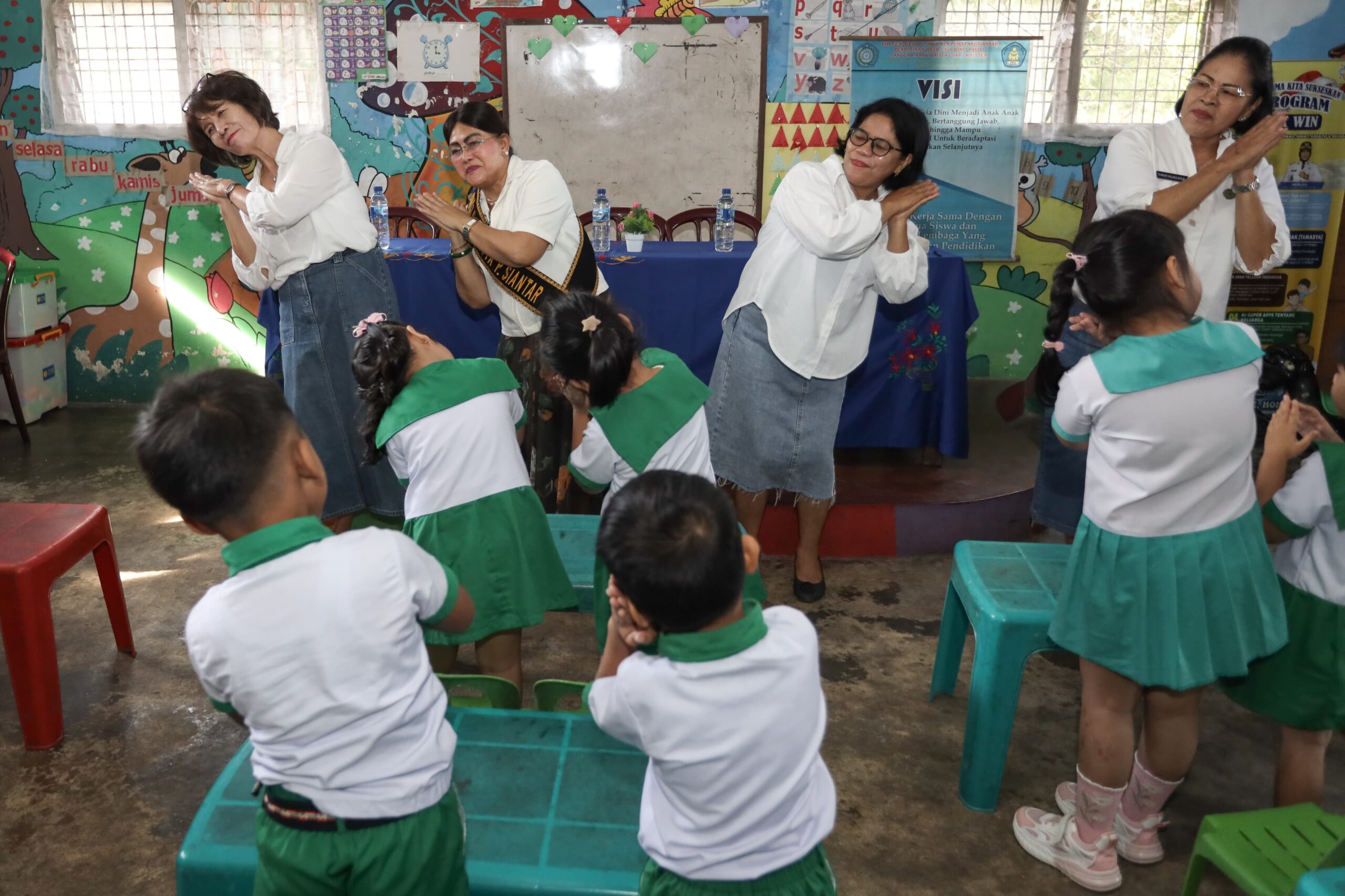 Ketua TP PKK yang juga pengelola Pendidikan Anak Usia Dini-Sanggar Anak Balita (PAUD-SAB) Kota Pematangsiantar Ny Liswati Wesly Silalahi mengunjungi tiga PAUD SAB, Senin (19/01/2026).