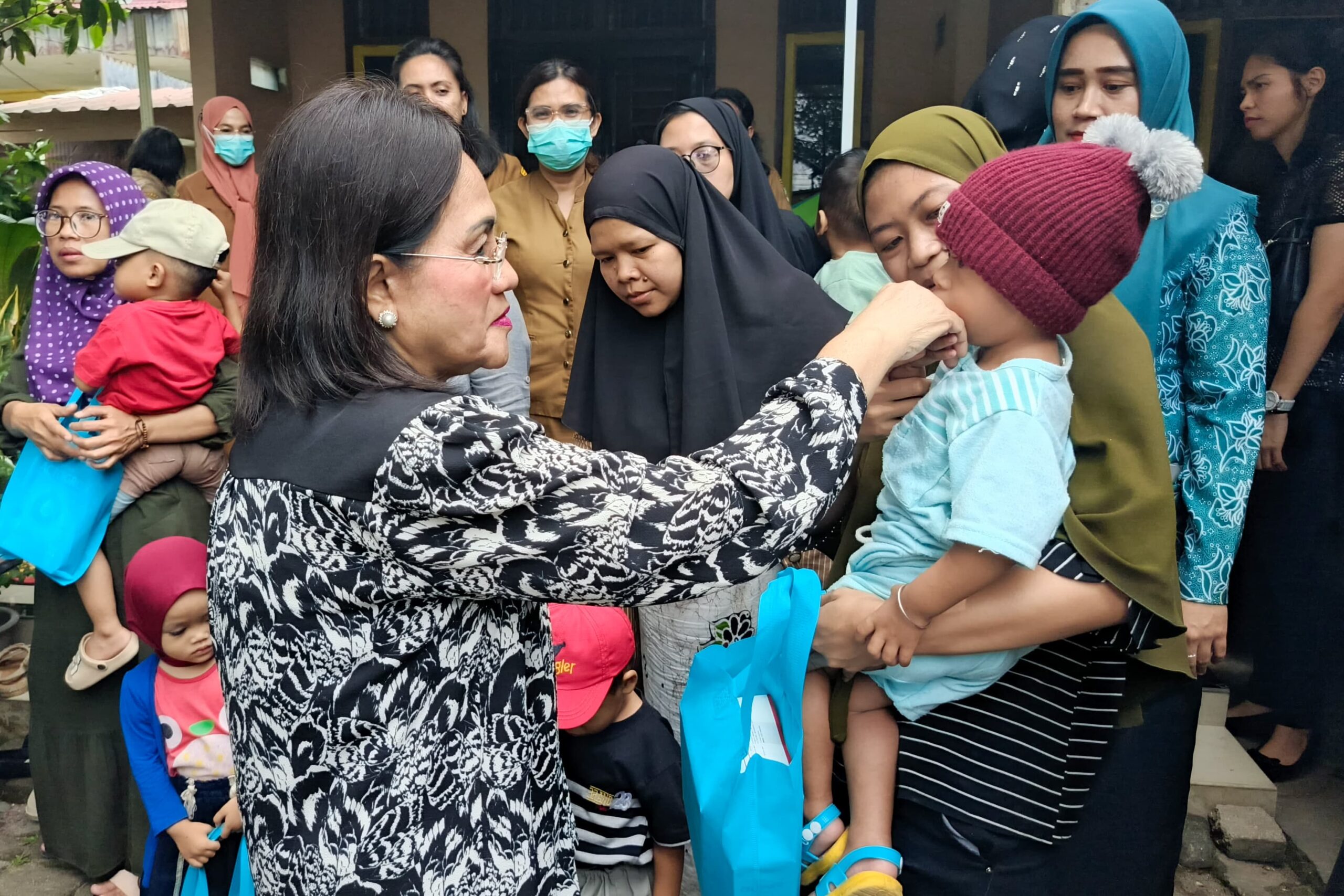 Kehadiran Ny Liswati disambut hangat oleh pengurus Posyandu, petugas kesehatan dari Puskesmas Kartini, pengurus TP PKK, serta puluhan kaum ibu.