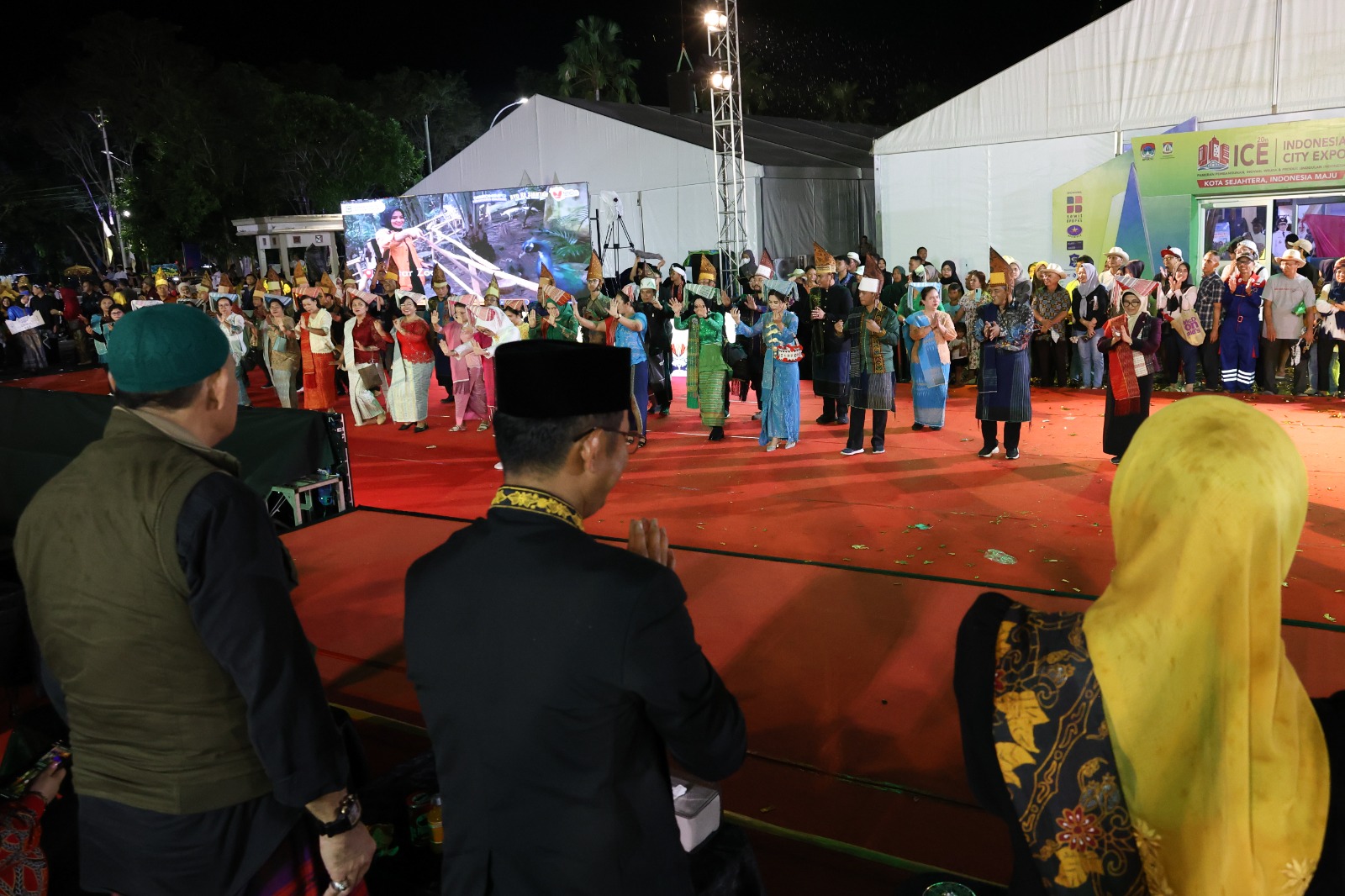 dr Susanti bersama rombongan pun manortor dan disambut tepuk tangan sejumlah kepala daerah dan ribuan masyarakat yang hadir.