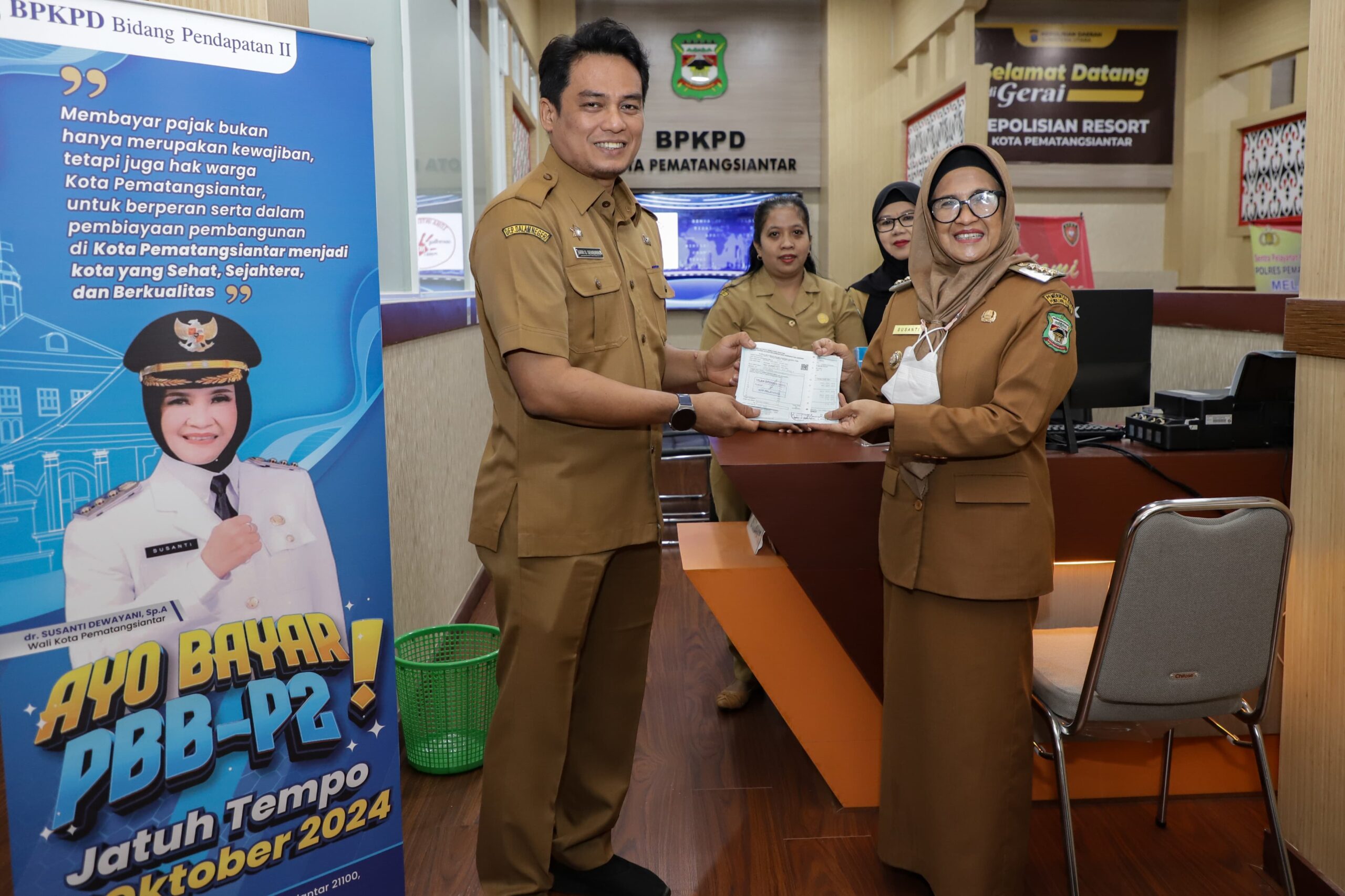 Walikota Siantar langsung melakukan pembayaran Pajak Bumi dan Bangunan-Pedesaan dan Perkotaan (PBB-P2) di gerai Badan Pengelola Keuangan dan Pajak Daerah (BPKPD) Pemko Pematangsiantar, Senin (09/09/2024).