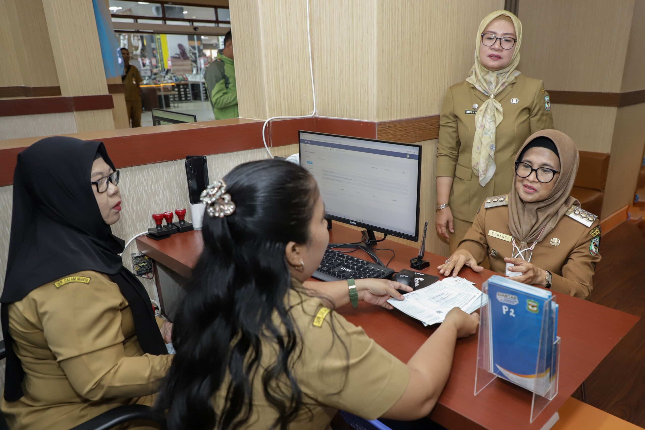 Kemudian, dr Susanti menuju gerai BPKPD, tepatnya di loket pembayaran PBB-P2 setelah sebelumnya mengambil kartu antrean online. Di loket pembayaran PBB-P2, dr Susanti dilayani dua petugas.