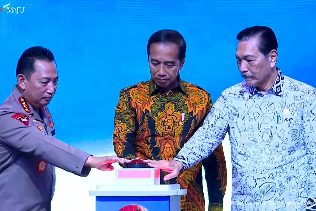 Digitalisasi Layanan Perizinan Penyelenggaraan Event diluncurkan Presiden Jokowi didampingi Kapolri Jenderal Listyo Sigit Prabowo dan Menteri Koordinator Bidang Kemaritiman dan Investasi (Menko Marves) Luhut Binsar Panjaitan.