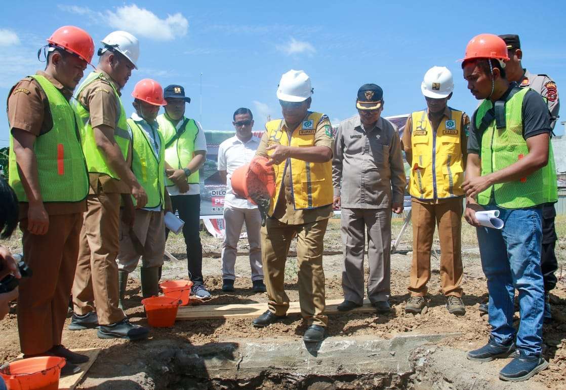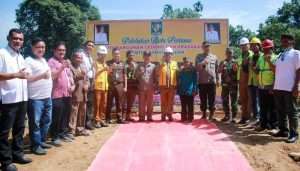 Bupati Simalungun Radiapoh Hasiholan Sinaga melakukan peletakan batu pertama pembangunan Kantor Camat Bandar dan juga Gedung Perpustakaan di Kota Perdagangan, Kecamatan Bandar, Kabupaten Simalungun, Senin (24/7/2023).