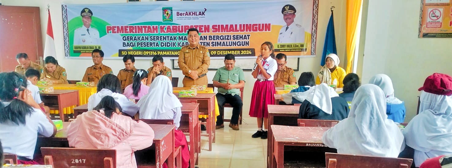Pemerintah Kabupaten (Pemkab) Simalungun, Sumut, melaksanakan gerakan serentak makanan bergizi sehat bagi peserta didik, Senin (9/12/2024).