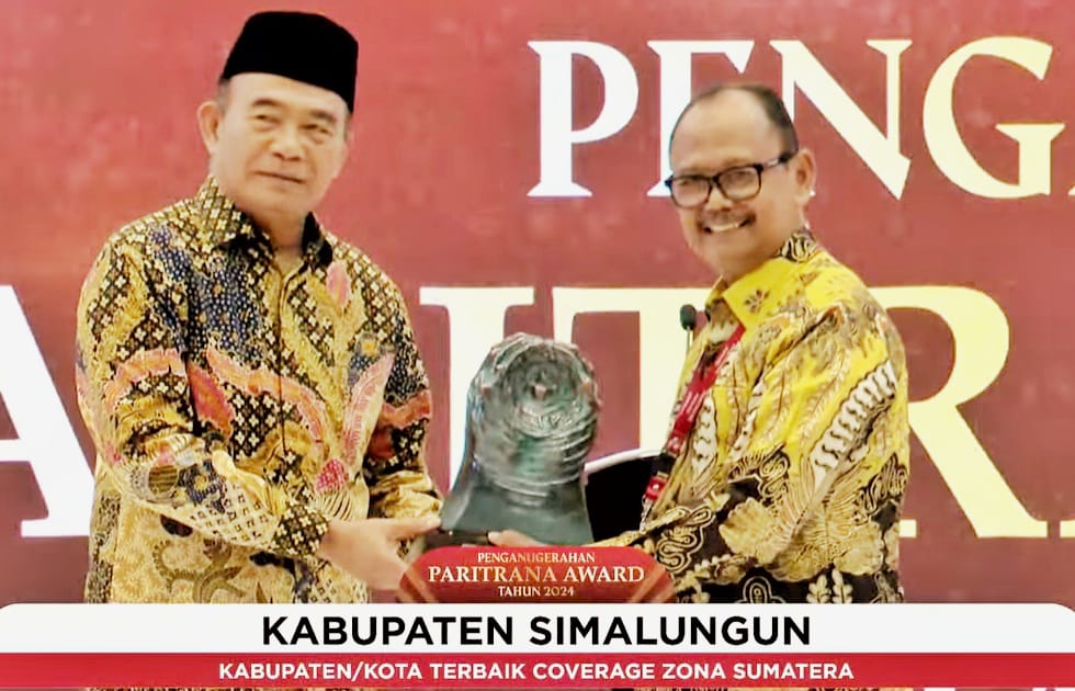 Pemerintah Kabupaten (Pemkab) Simalungun menerima anugerah Penghargaan Paritrana Award Tahun 2024 sebagai Kabupaten terbaik Coverrage Sumatera dari Pemerintah Pusat.