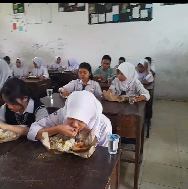 Pemberian makan bergizi gratis kepada siswa sebagai bagian dari program Presiden RI Prabowo Subianto guna meningkatkan gizi dan energi siswa dalam belajar.