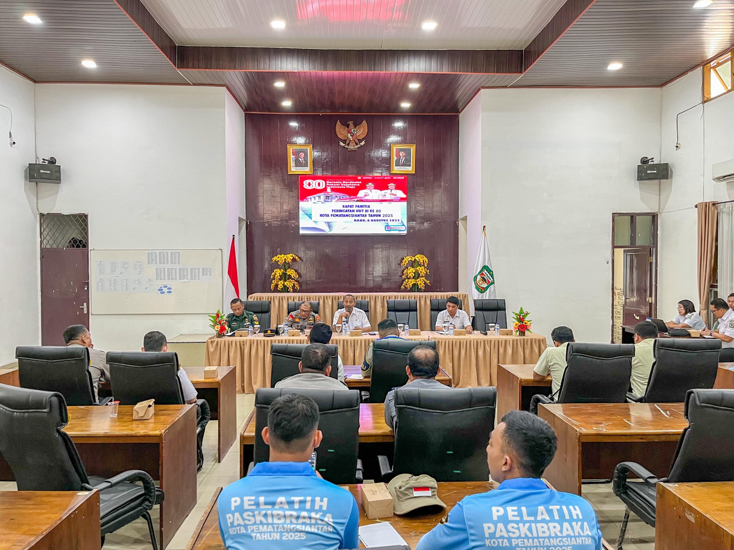 Pemerintah Kota (Pemko) Pematangsiantar menggelar rapat persiapan Hari Ulang Tahun (HUT) ke-80 Kemerdekaan Republik Indonesia (RI) di Ruang Data Balai Kota Pematangsiantar, Rabu (06/08/2025).