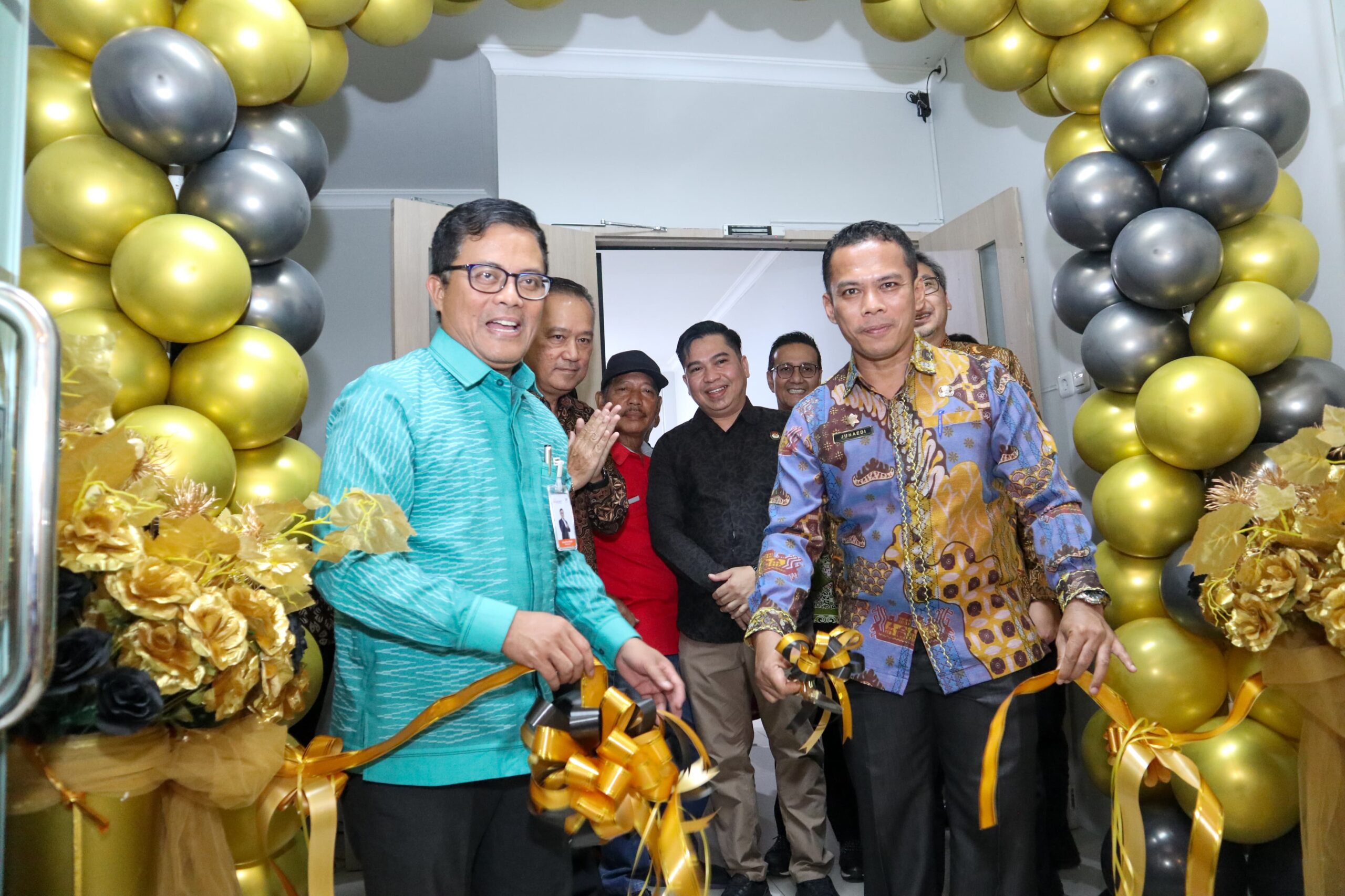 Wali Kota Pematangsiantar dr Susanti Dewayani SpA diwakili Sekretaris Daerah (Sekda) Junaedi Antonius Sitanggang SSTP MSi meresmikan Lounge Prioritas Kantor Cabang (KC) Bank Sumut Pematangsiantar, Jumat (28/06/2204).