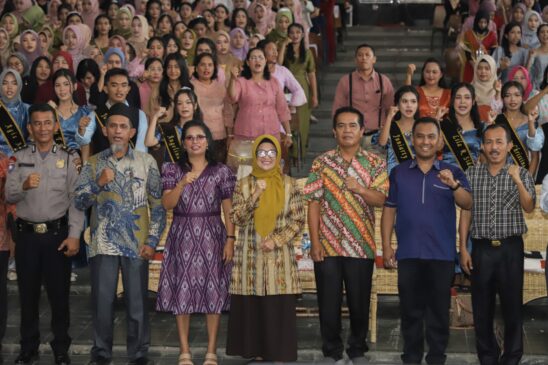 Wali Kota Pematangsiantar dr Susanti Dewayani SpA menyematkan selempang kepada para pelajar kelas XII SMK Negeri 1 Pematangsiantar.