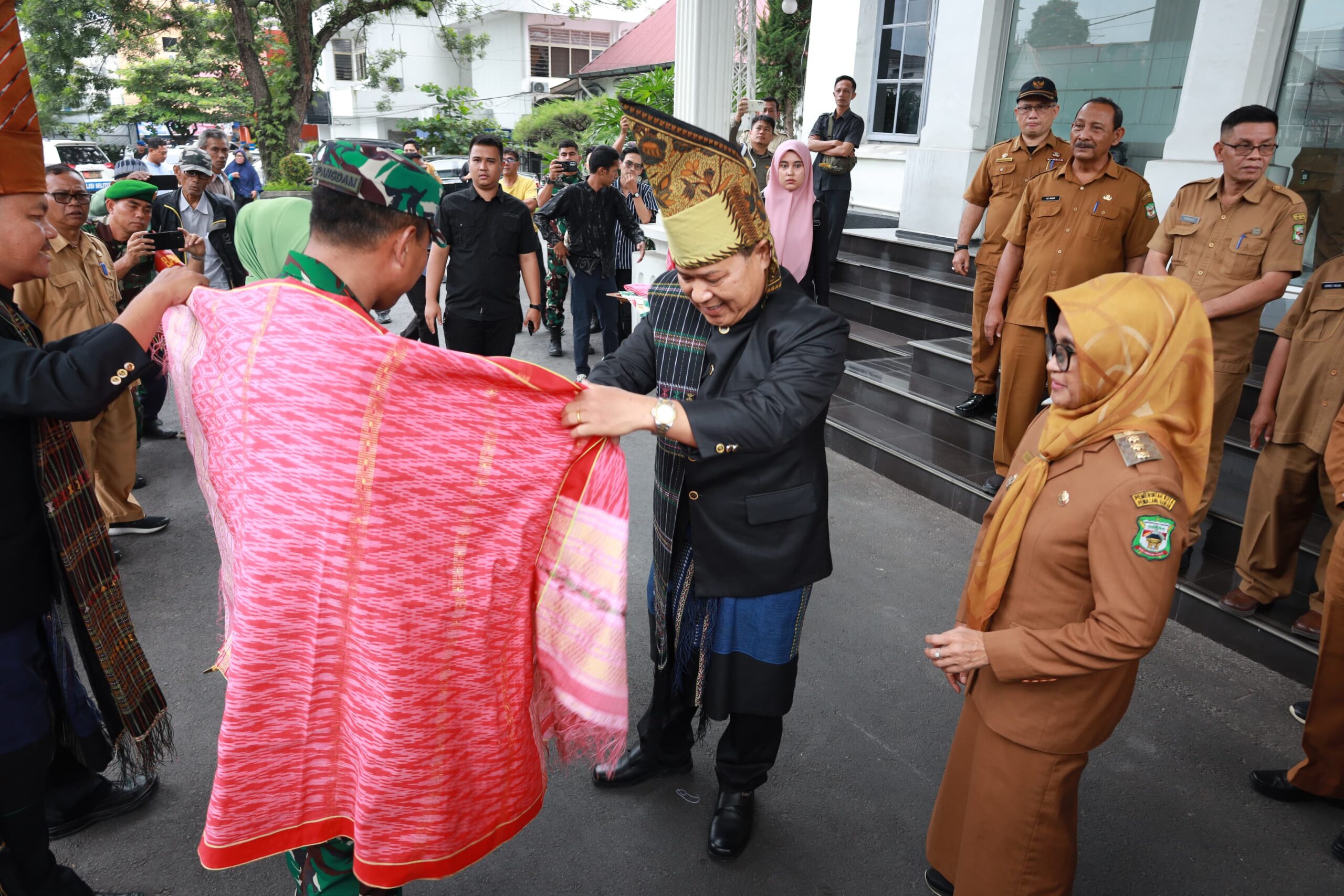 Wali Kota Pematangsiantar dr Susanti Dewayani SpA didampingi Sekretaris Daerah (Sekda) Junaedi Antonius Sitanggang SSTP MSi menyambut kunjungan silaturahmi Pangdam I/Bukit Barisan Mayjen TNI Rio Firdianto beserta rombongan, di Balai Kota Pematangsiantar, Jalan Merdeka, Selasa (10/12/2024) sore.