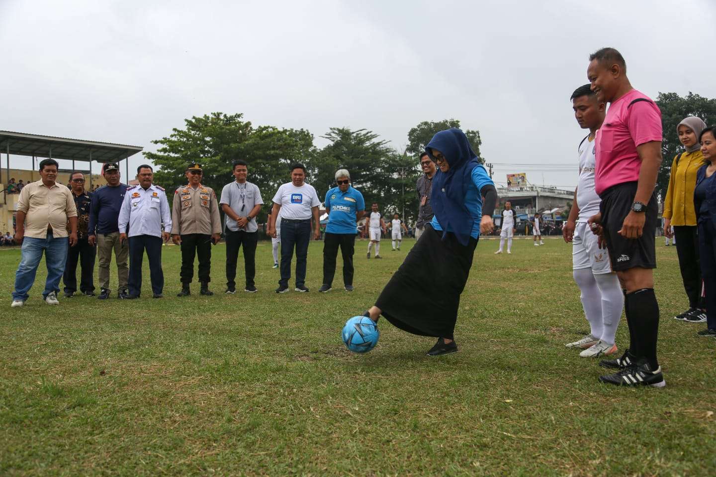 Selanjutnya, dr Susanti melakukan kick off tanda dimulainya Pertandingan Persahabatan PS Pemko Pematang Siantar.