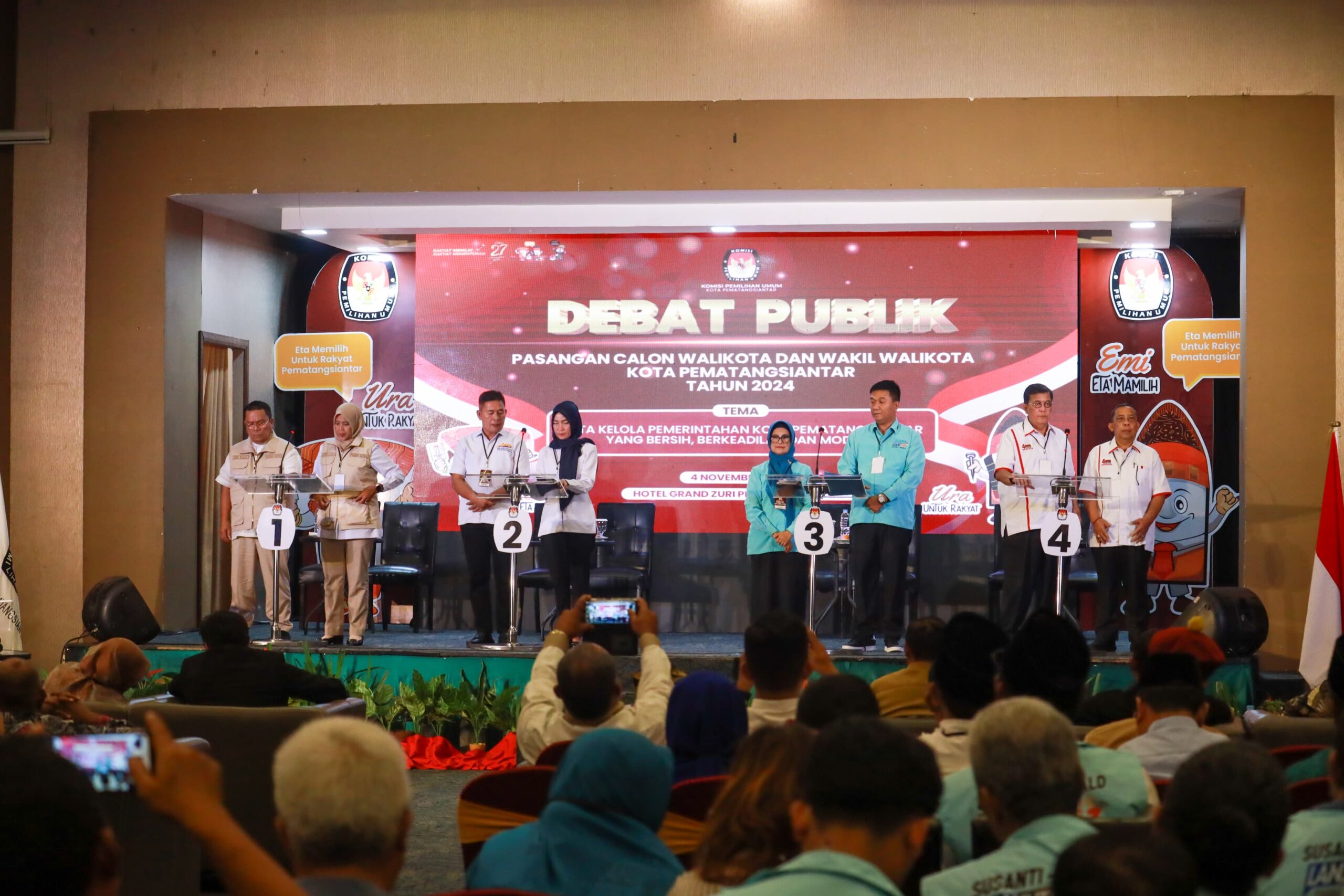 Debat publik digelar di Ballroom Hotel Grand Zuri Pematangsianțar, Senin (04/11/2024).