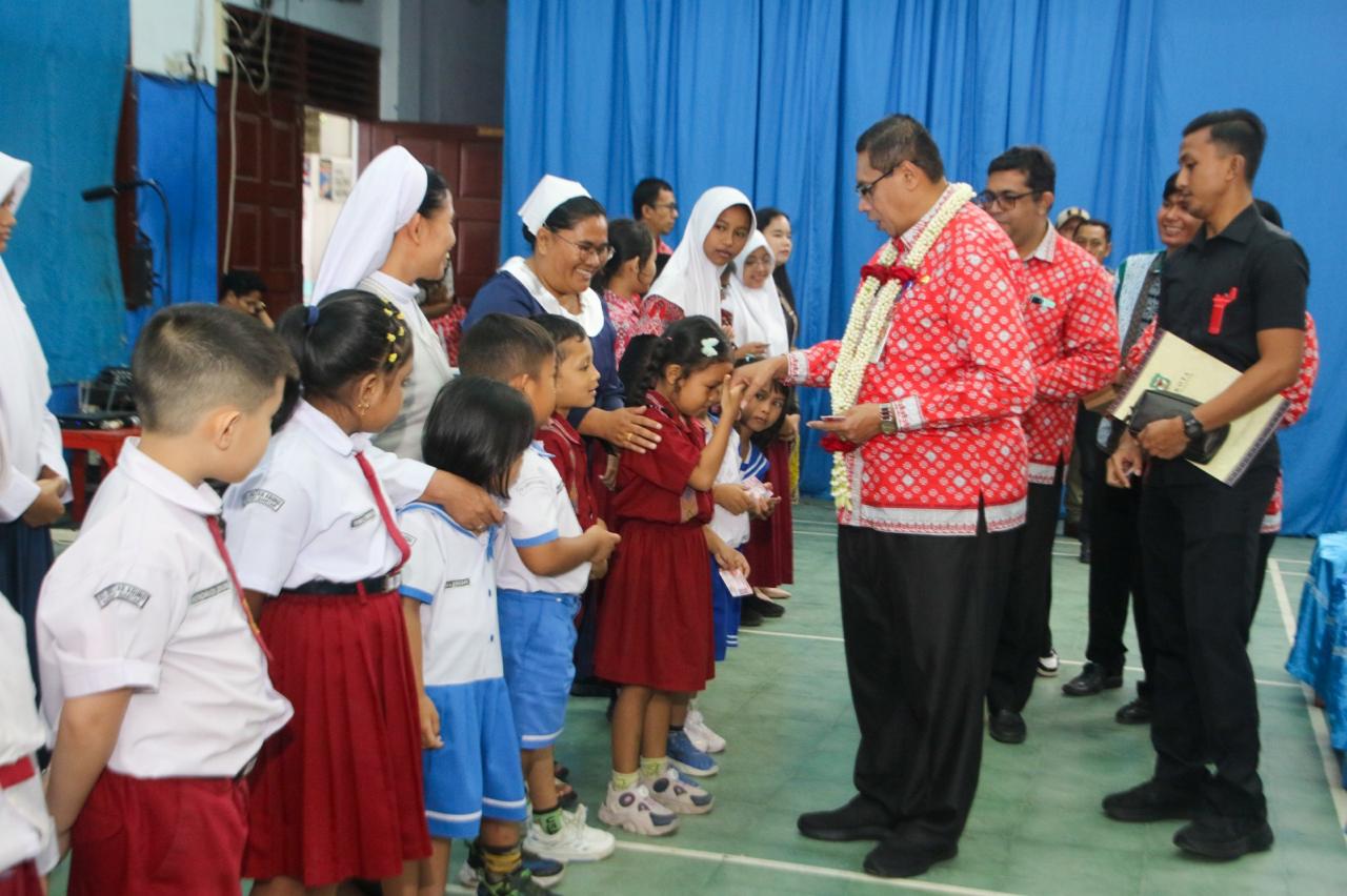 Penjabat Sementara (Pjs) Wali Kota Pematangsiantar Drs Matheos Tan MM membagikan Kartu Tanda Penduduk elektronik (e-KTP) pemula dan Kartu Identitas Anak (KIA) kepada para pelajar dari 24 sekolah. Pembagian KTP berlangsung di aula Perguruan Sultan Agung, Jalan Surabaya Pematangsiantar, Kamis (14/11/2024).