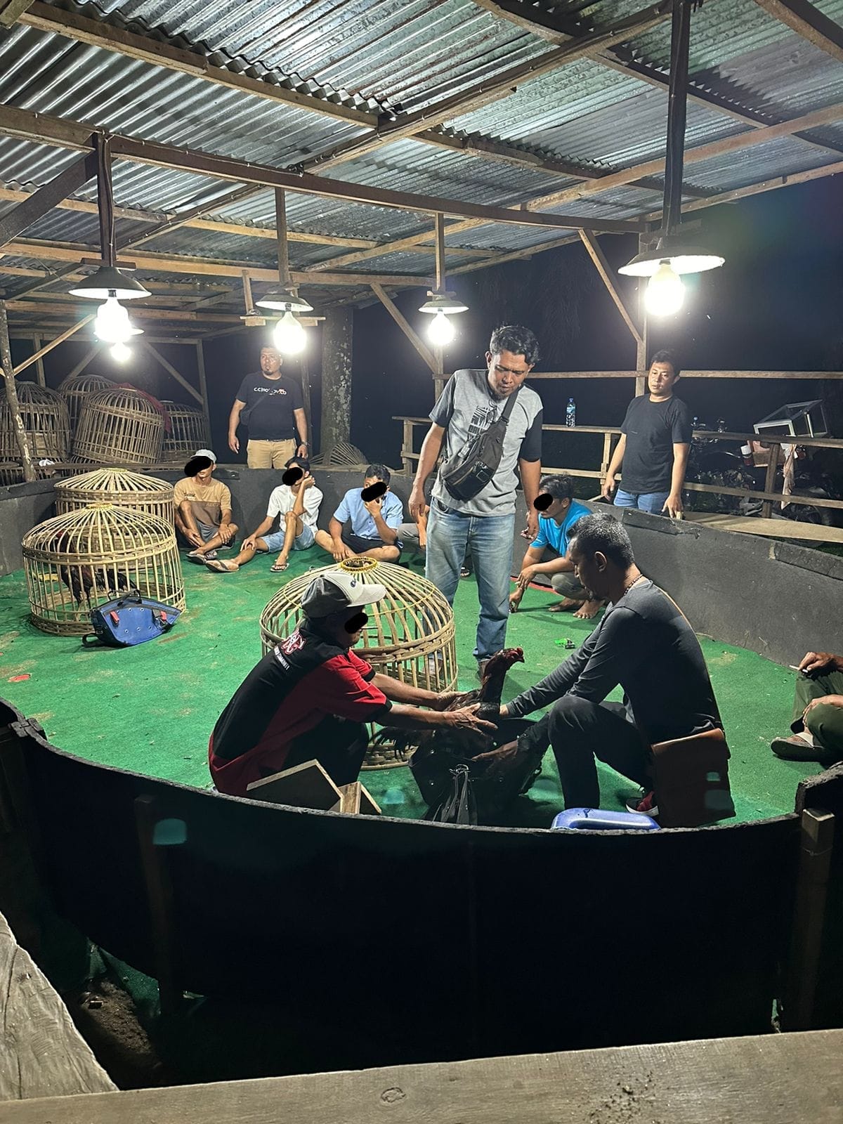 Kepolisian Resort (Polres) Simalungun menggerebek lokasi perjudian sabung ayam di Desa Balimbingan, Kecamatan Tanah Jawa, Kabupaten Simalungun, Jumat (17/5/2024).