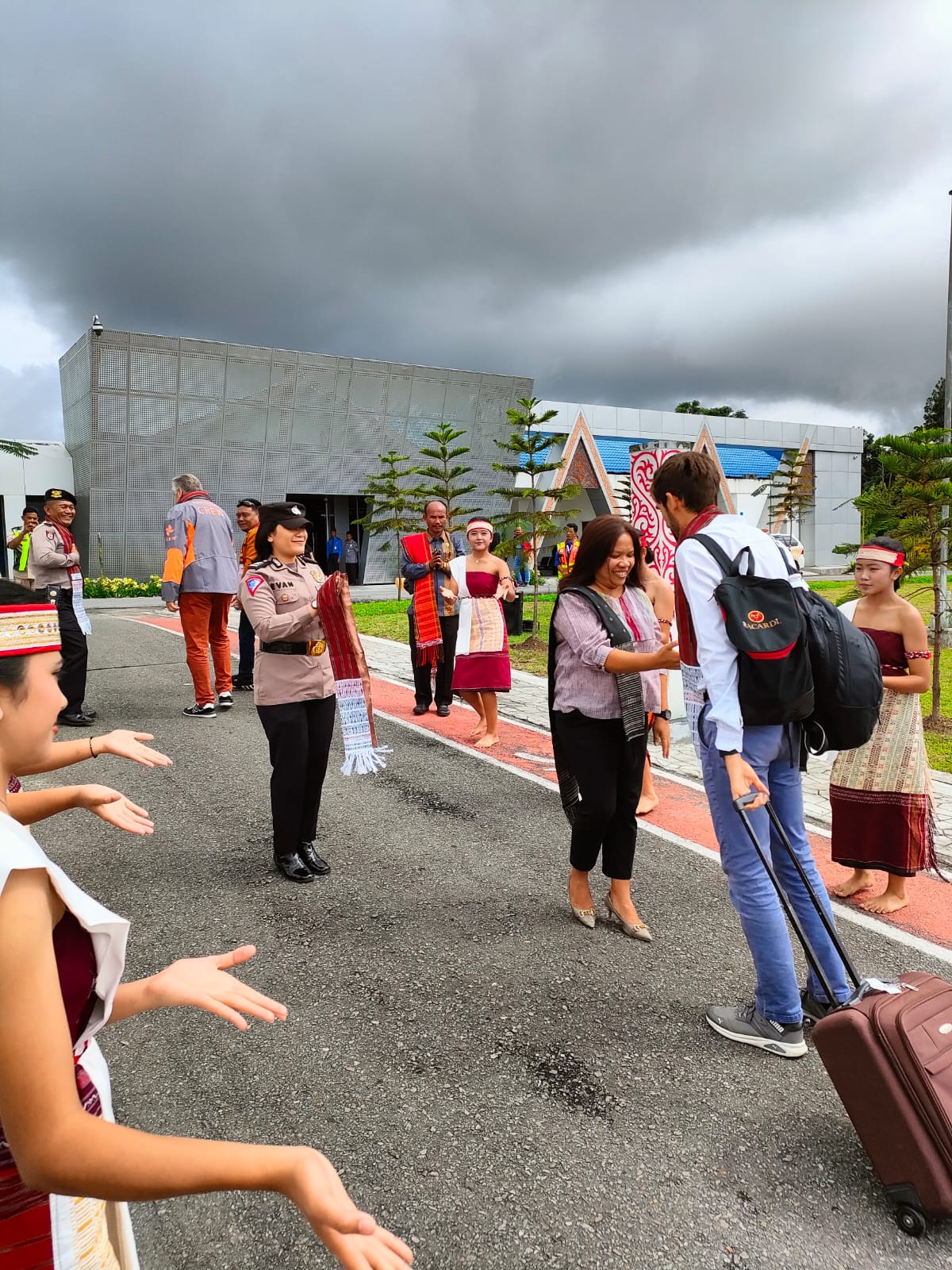 Selain memberikan pengamanan, polri dengan bekerjasama dengan panitia Aqua Bike memberikan PIN Presisi terhadap beberapa delegasi fi bandara Silangit.