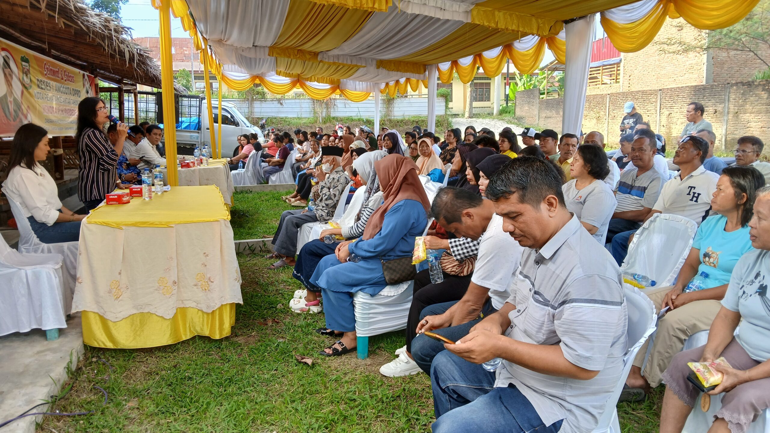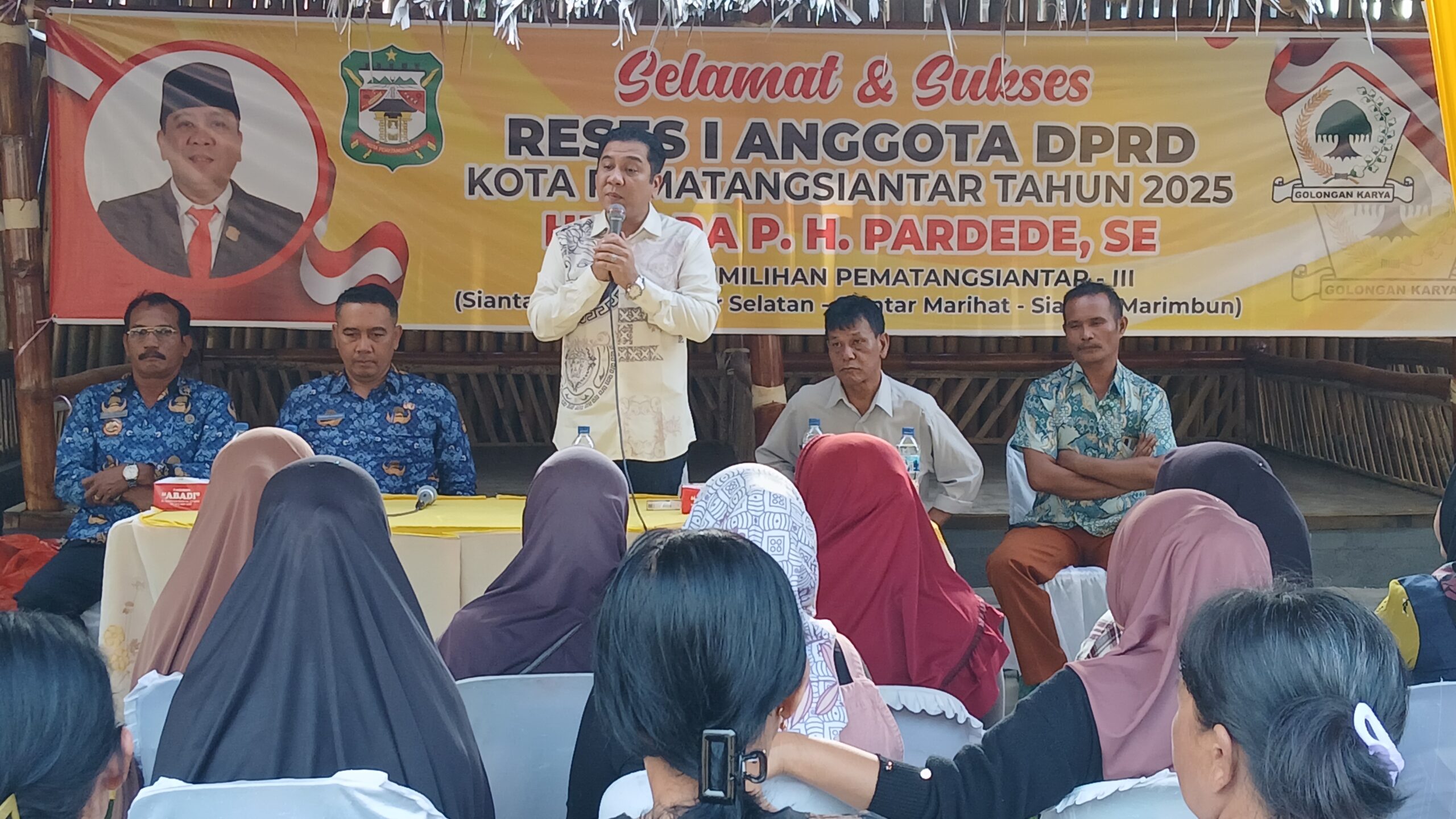 Anggota DPRD Kota Pematangsiantar Hendra PH Pardede lakukan reses di Jalan Siantar-Parapat, Km 4,5, Kelurahan Tong Marimbun, Kecamatan Siantar Marimbun, Kota Pematangsiantar, Sumatera Utara, Selasa 17 Juni 2025.