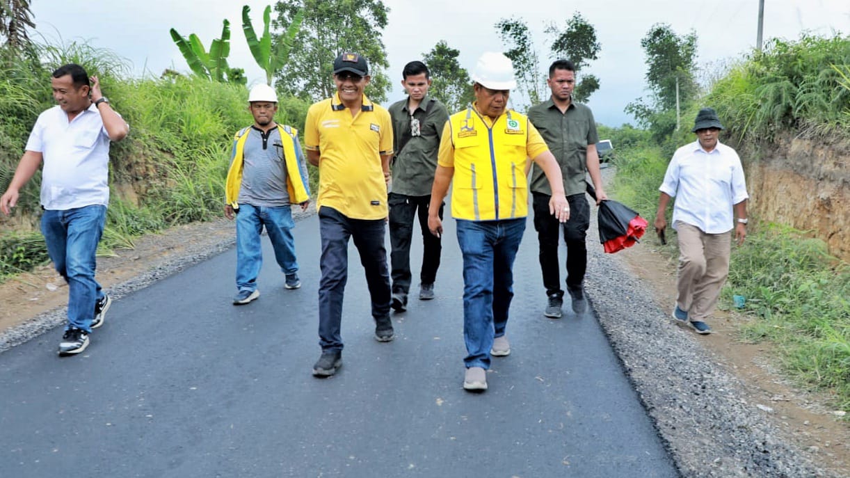 Bupati Simalungun Radiapoh Hasiholan Sinaga (RHS) didampingi Kadis Pekerjaan Umum dan Tata Ruang (PUTR) Hotbinson Damanik meninjau Penanganan Long Segment jalan di Kecamatan Dolok Silou, Simalungun, Sumut, Senin (05/8/2024).