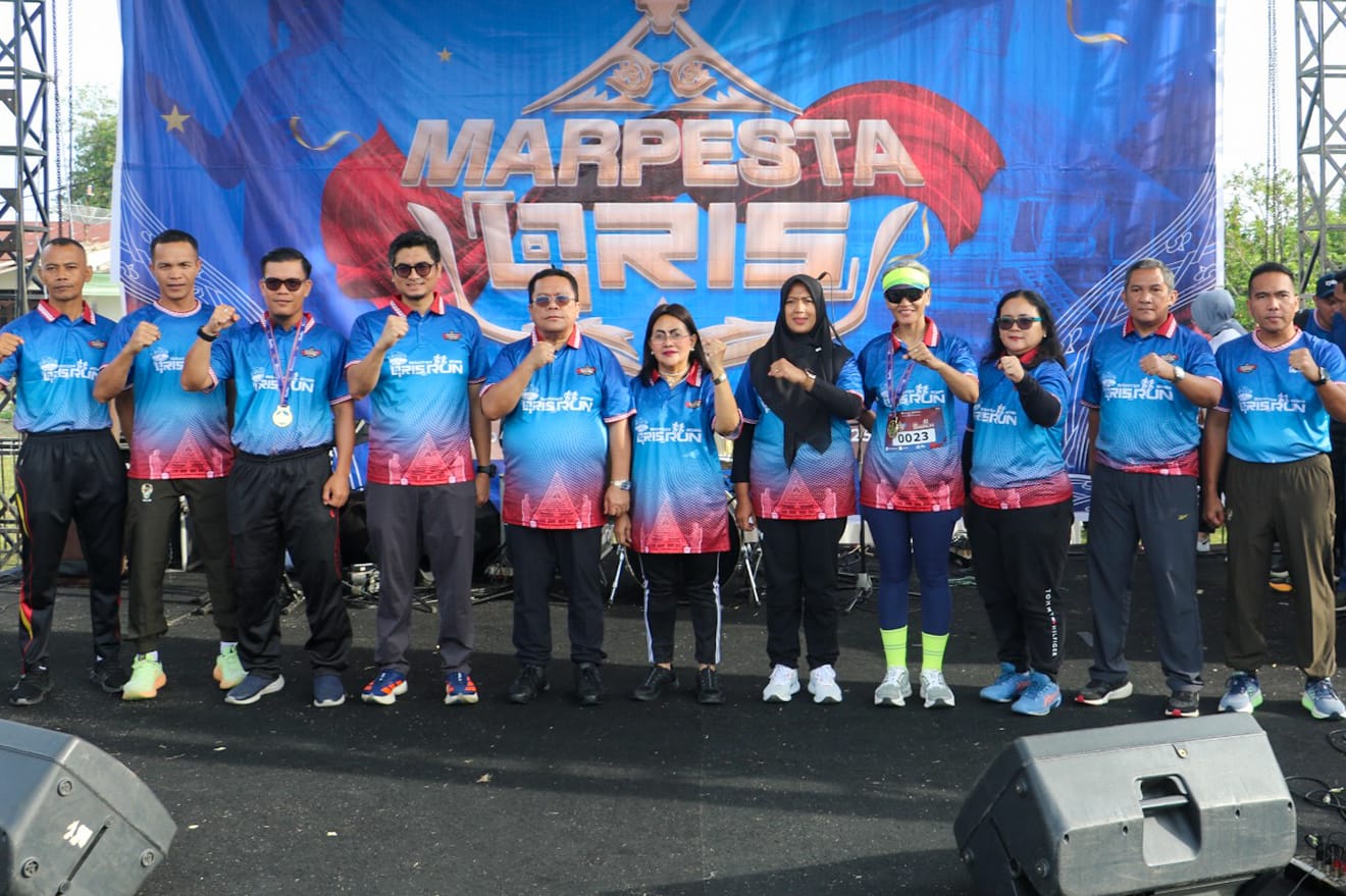 Para peserta start di Lapangan Farel Pasaribu/Lapangan Horbo, Jalan Farel Pasaribu Kelurahan Sukamaju Kecamatan Siantar Marihat, Sabtu (16/08/2025) pagi, dan dilepas Wali Kota Pematangsiantar Wesly Silalahi SH MKn didampingi Ketua TP PKK Ny Liswati Wesly Silalahi dan Kepala Perwakilan BI Pematangsiantar Ahmadi Rahman.