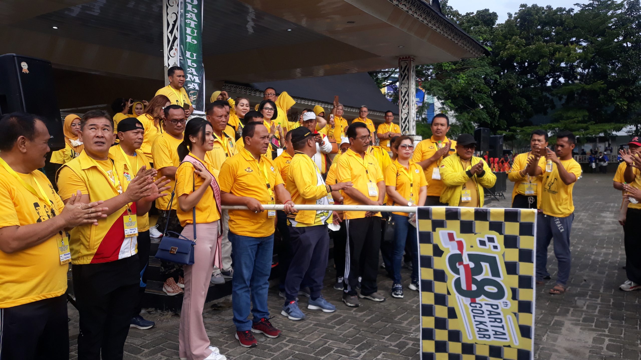 “Dengan gerak jalan sehat ini, kita dapat saling mengenal dan timbul rasa persaudaraan. Semoga Partai Golkar semakin jaya,” sebutnya.