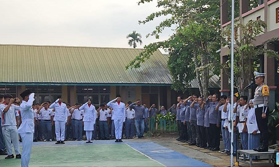 Satuan Lalu Lintas (Sat Lantas) Polres Simalungun melaksanakan kegiatan sosialisasi dan himbauan keselamatan berlalu lintas kepada siswa SMK Satria Budi Perdagangan, Kabupaten Simalungun, Senin (17/2/2025).