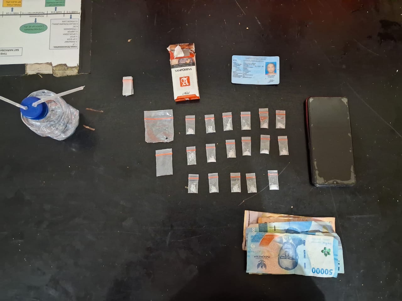 Selain narkotika, tim juga mengamankan sejumlah barang bukti pendukung yang menunjukkan aktivitas perdagangan gelap, meliputi uang tunai sebesar Rp 205.000, satu unit handphone Vivo warna hitam, satu alat hisap bong yang dibuat dari botol plastik, satu kotak rokok, dua plastik klip besar kosong, dan empat plastik klip kecil kosong.