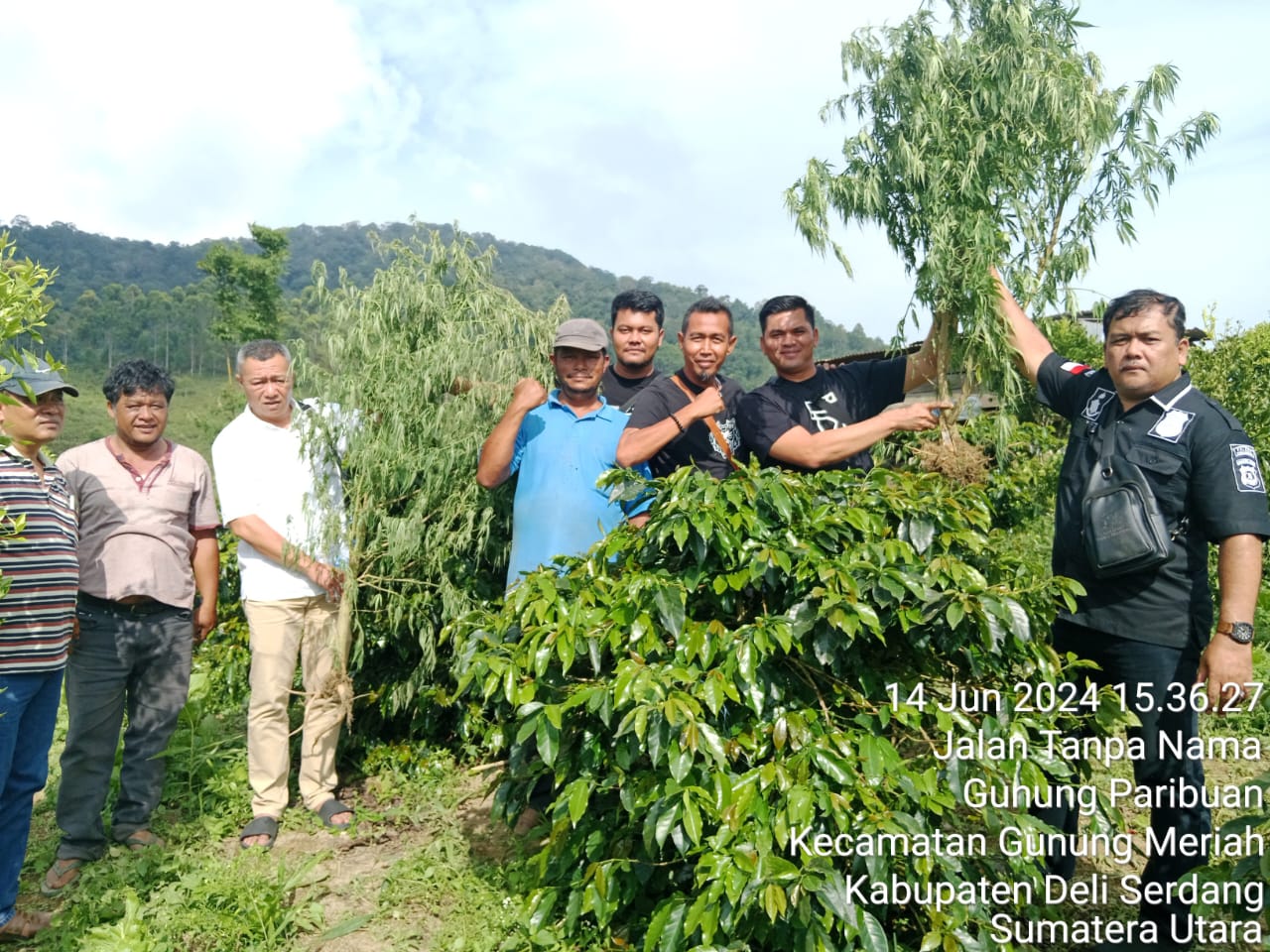 Pelapor bersama saksi, didampingi Pangulu Nagori dan anak tersangka, menuju lokasi ladang dan menemukan 24 batang tanaman ganja yang ditanam di antara pohon kopi.