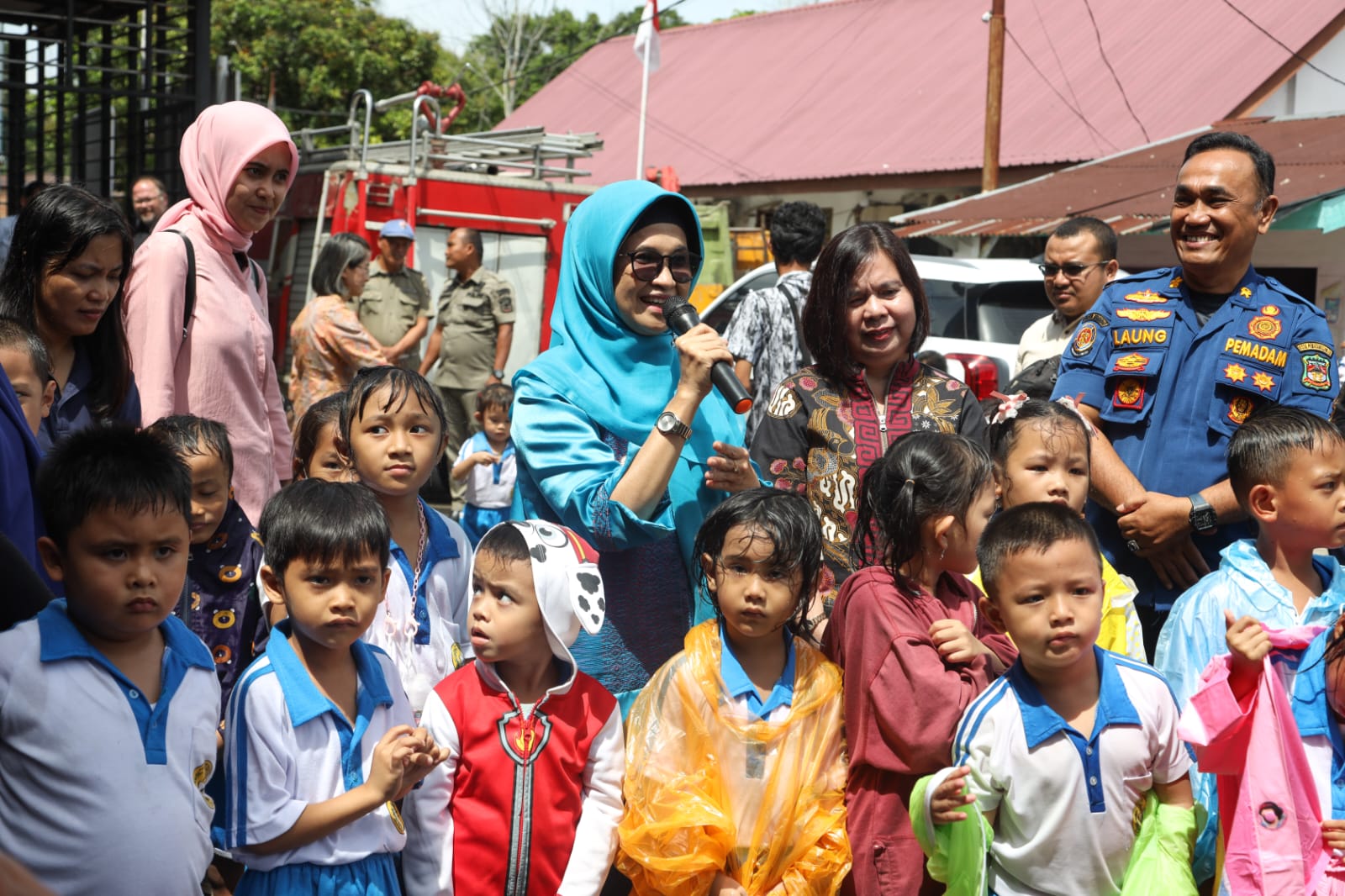 dr Susanti dalam sambutannya merespon positif kegiatan simulasi pencegahan dan penanggulangan pemadaman kebakaran yang dilaksanakan Dinas Pemadam Kebakaran dan Penyelamatan Kota Pematang Siantar kepada murid-murid TK.