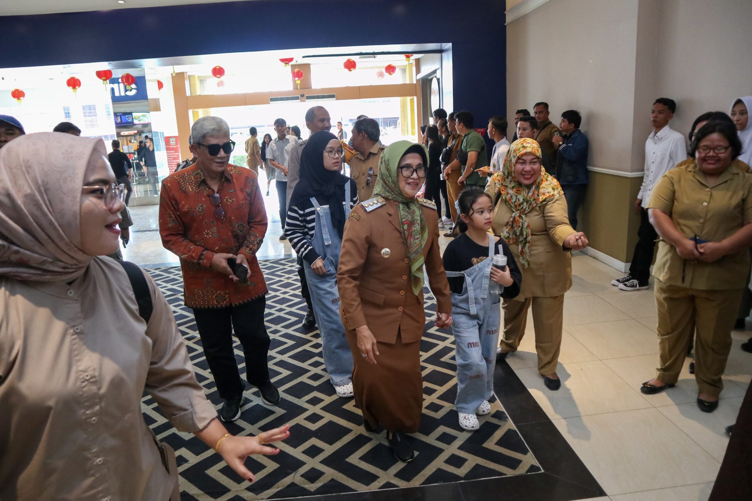 Wali Kota Pematangsiantar dr Susanti Dewayani SpA bersama Ketua Dekranasda H Kusma Erizal Ginting SH menyaksikan Gala Premiere (Penayangan Perdana) Film Siantar Hotel Berdarah, di Cinepolis Kota Pematangsiantar, Senin (17/02/2025).