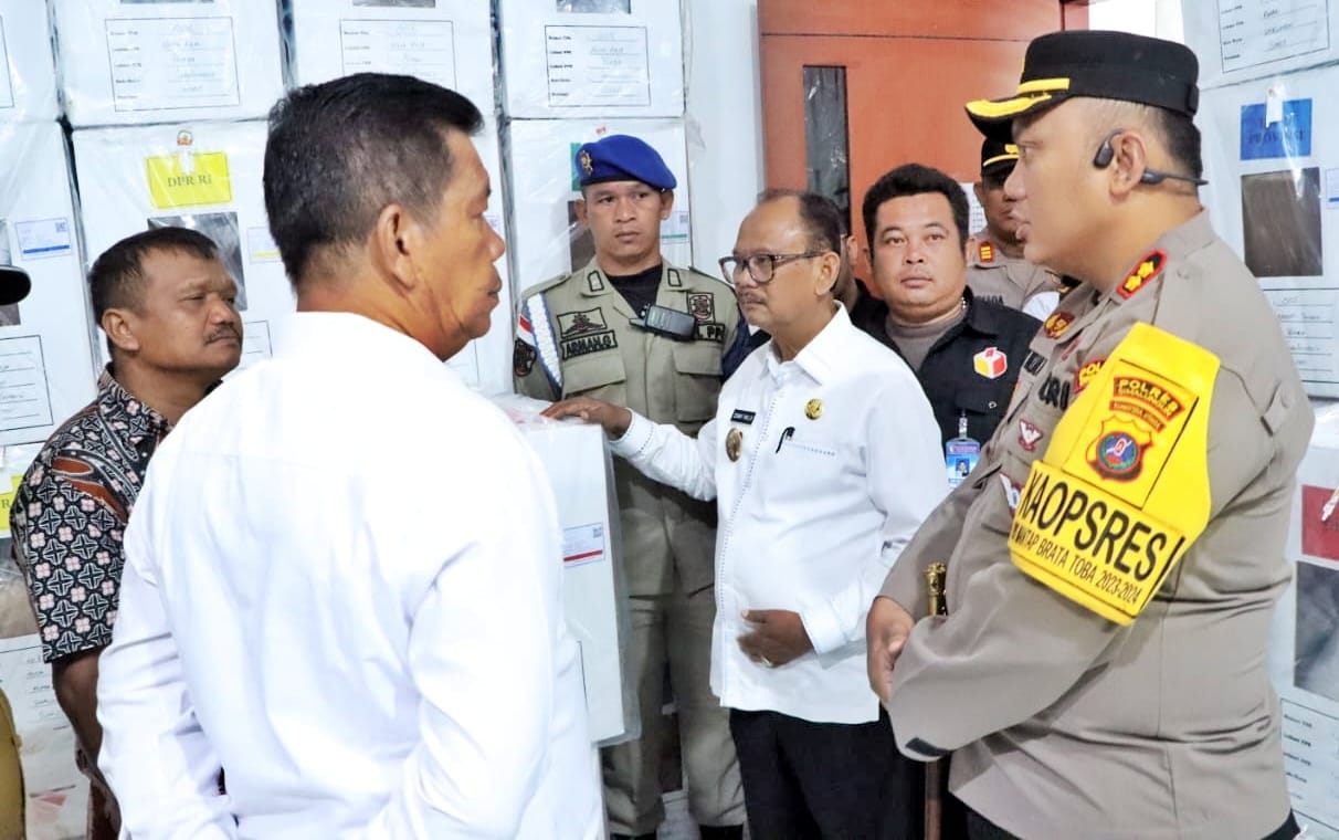 Bupati Simalungun Radiapoh Hasiholan Sinaga bersama Wakil Bupati H Zonny Waldi dan Forkopimda meninjau kesiapan Tempat Pemungutan Suara dan Logistik Pemilu di sejumlah Kecamatan wilayah Kabupaten Simalungun, Sumut, Selasa, (13/2/2024).