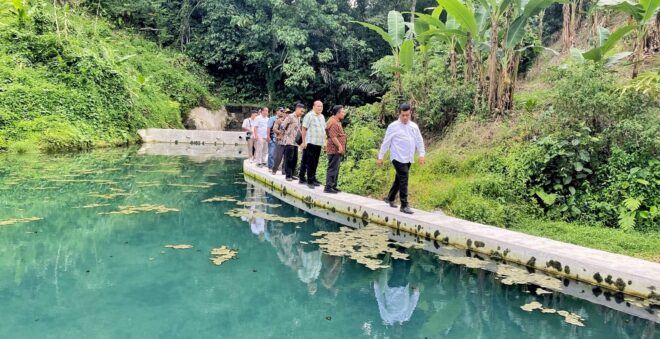Saat berada di lokasi sumber air (mata air/umbul) Bupati meminta kepada Dirut PDAM untuk melakukan pengecekan debit air dan kelayakan air untuk di konsumsi masyarakat.
