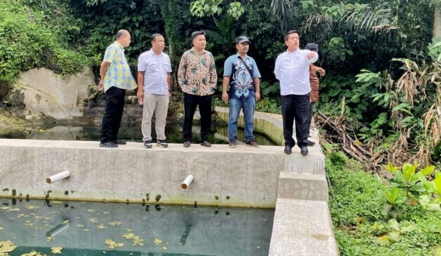 Bupati Simalungun Radiapoh Hasiholan Sinaga didampingi Direktur Utama (Dirut) Perusahaan Daerah Air Minum (PDAM) Tirta Lihou Dodi Ridowin Mandalahi meninjau sumber air di wilayah Kecamatan Panei, Simalungun, Sumut, Sabtu (20/4/2024).