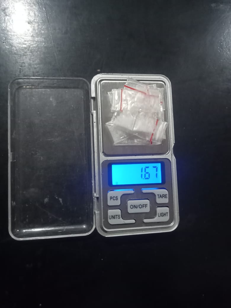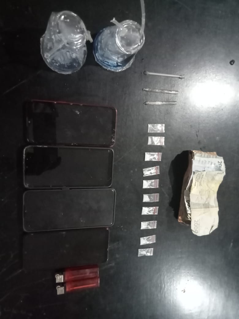 Dalam penggeledahan, petugas berhasil mengamankan sejumlah barang bukti, seperti 10 plastik klip berisi narkotika jenis sabu dengan berat bruto 1,67 gram, 1 kaca pirex diduga berisi sabu, 2 kotak korek api Tokai, 2 alat hisap sabu dari kemasan minuman, 4 unit handphone (1 Oppo biru, 1 Vivo hitam, 2 Oppo merah), Uang tunai Rp 430.000.,
