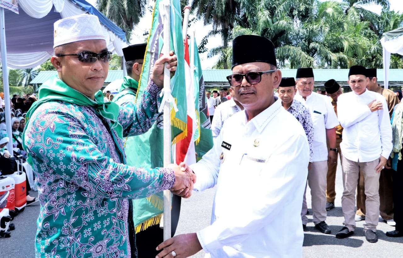 Keberangkatan jamaah tersebut dilepas langsung oleh Bupati Simalungun diwakili Wakil Bupati H Zonny Waldi dari Halaman Masjid Asy Syuhada Korem 022/PT, Jln. Asahan Kecamatan Siantar, Simlaungun, Sumut, Senin (05/06/2023).