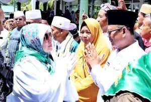 “Berangkat lah dengan niat suci untuk memenuhi panggilan Allah. Saya yakin dan percaya bahwa para bapak dan ibu dengan keimanan yang kuat bisa melaksanakan rukun yang kelima dari rukun Islam,”kata Wakil Bupati.