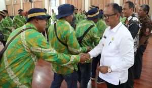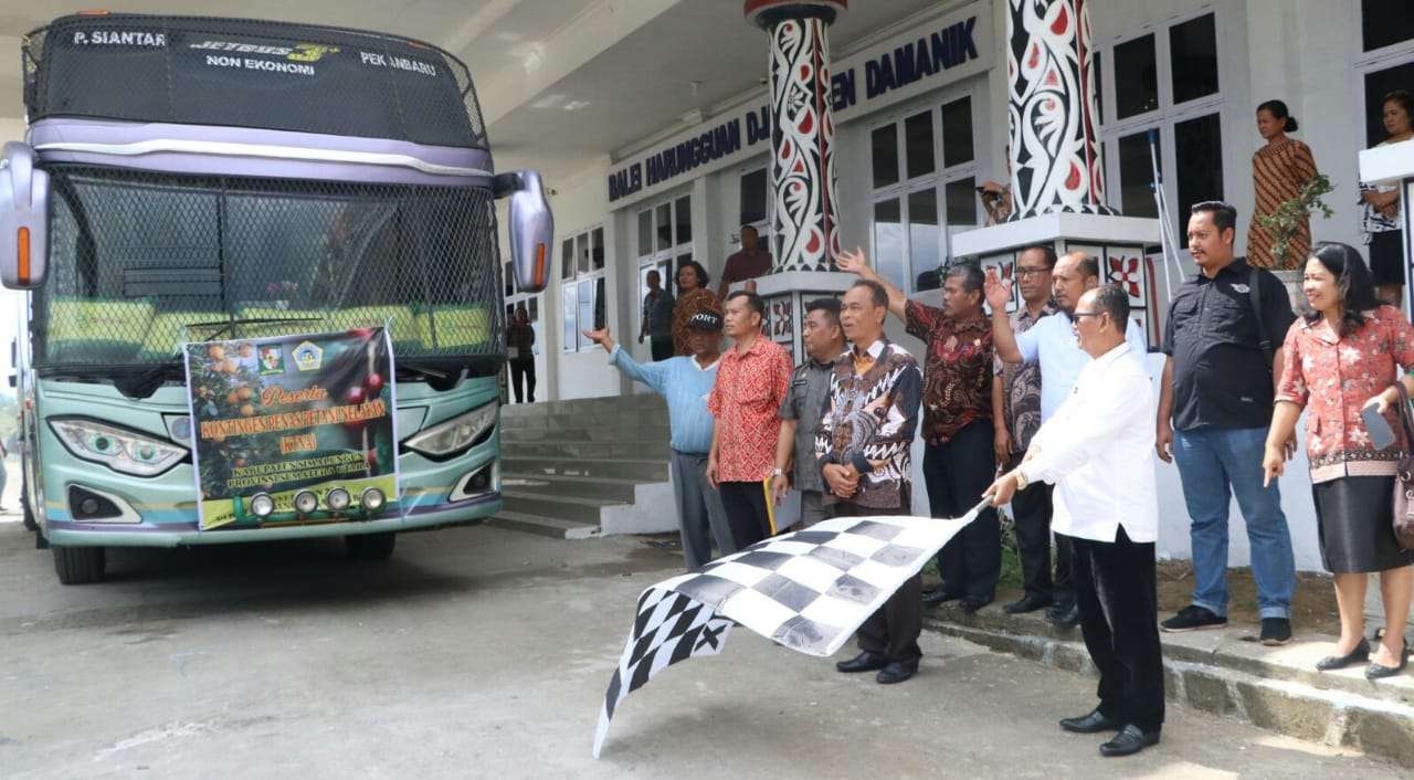 Kontingen Penas Petani Nelayan Kabupaten Simalungun di berangkatkan Wakil Bupati dari Balei Harungguan Djabanten Damanik Kantor Bupati Simalungun, Pamatang Raya, Sumut, Kamis (8/6/2023).