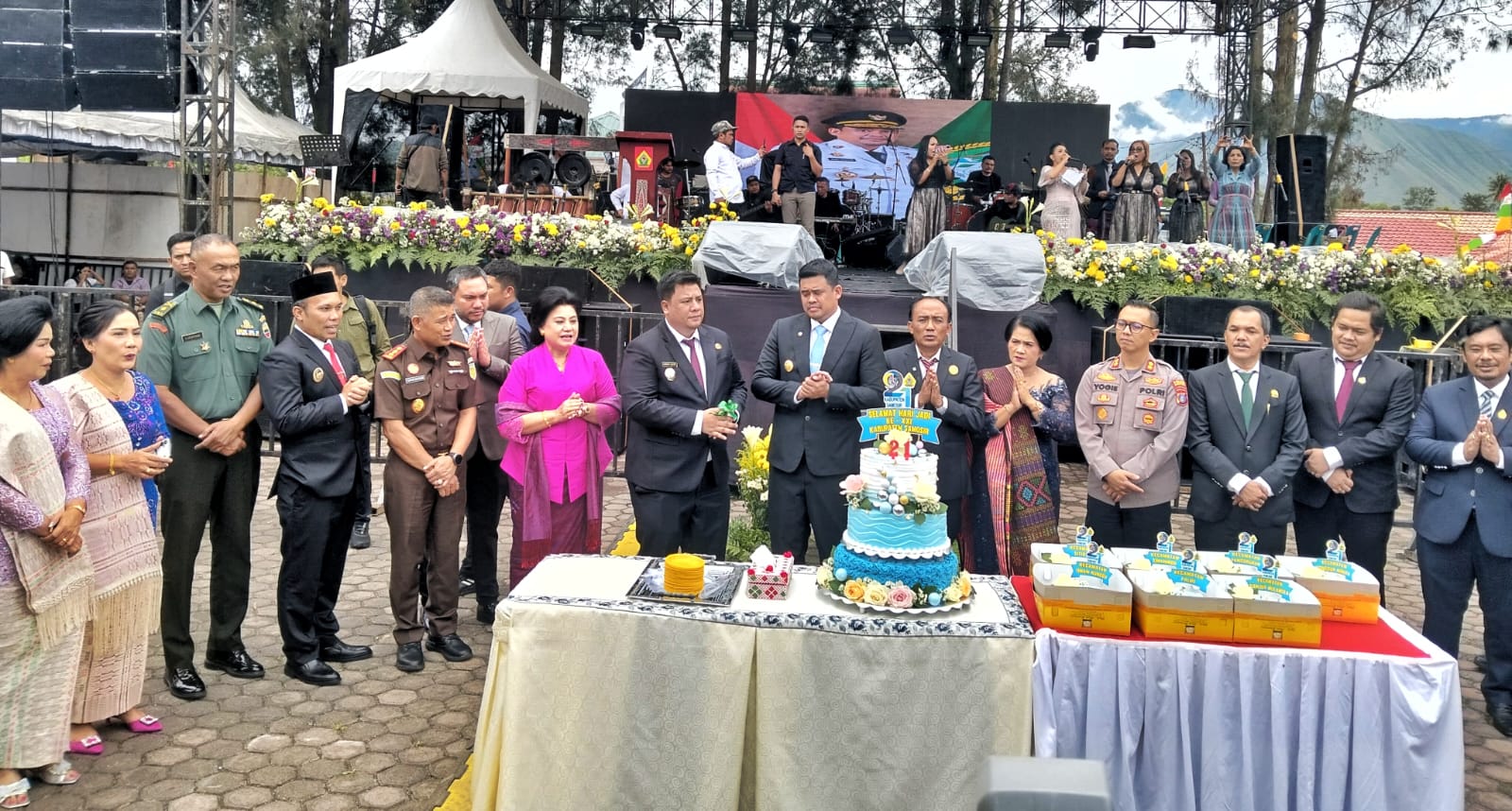 Tak hanya itu, Wakil Bupati Simalungun juga ikut serta dalam prosesi pemotongan kue ulang tahun sebagai simbol rasa syukur atas perjalanan panjang Kabupaten Samosir selama 21 tahun.