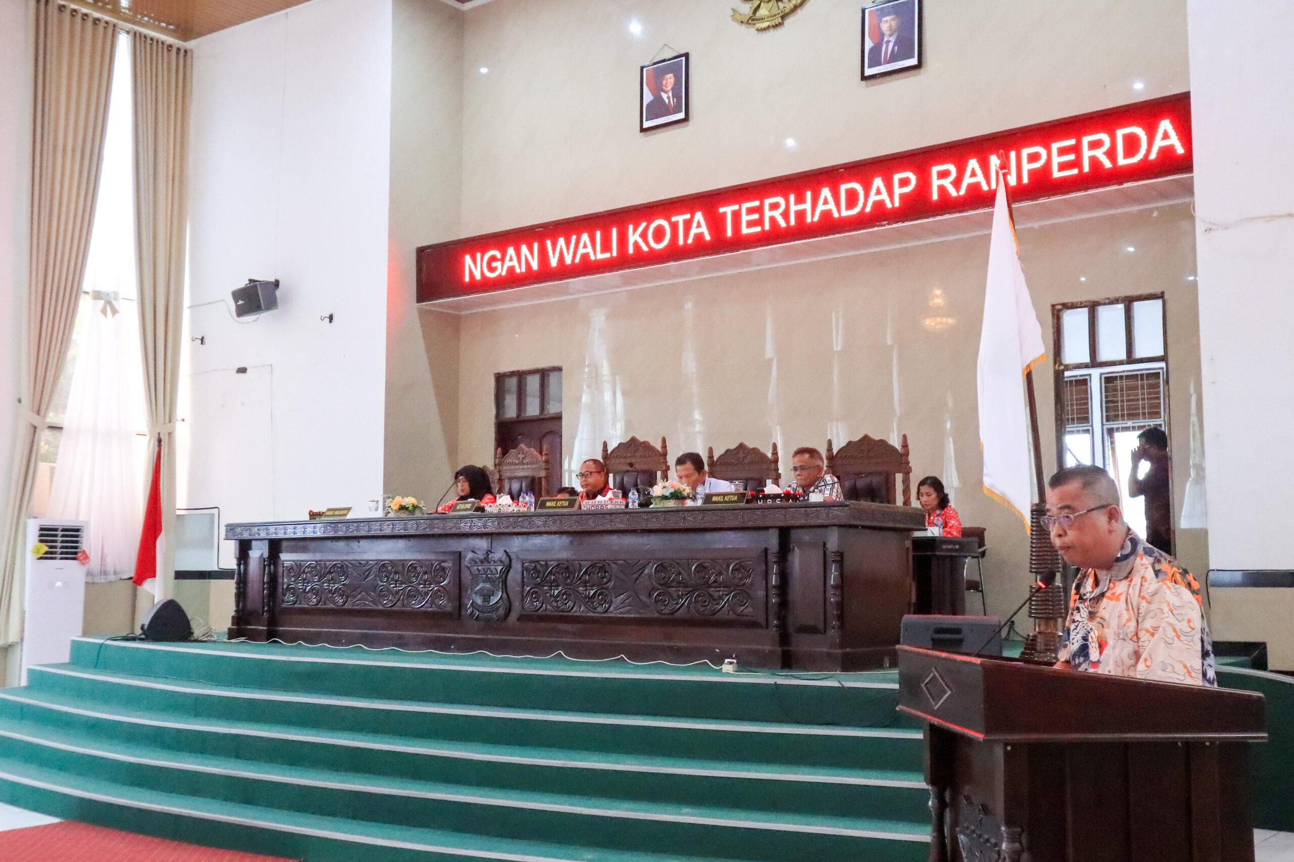 Wakil Wali Kota Herlina menghadiri Rapat Paripurna DPRD Kota Pematangsiantar Tahun 2025 dengan agenda Penyampaian Pemandangan Umum Fraksi DPRD atas Pengantar Nota Keuangan Wali Kota terhadap Rancangan Peraturan Daerah (Ranperda) APBD Tahun Anggaran (TA) 2026, di Ruang Sidang Harungguan DPRD, Kamis (20/11/2025).
