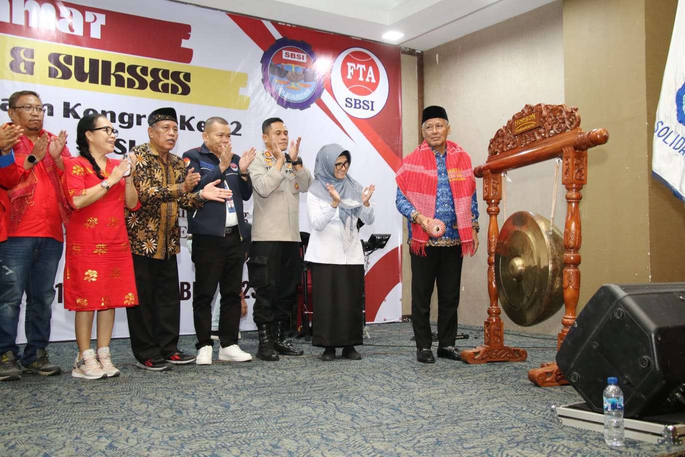 Pembukaan Kongres ke-2 FTA SBSI ditandai dengan pemukulan gong.(iw)