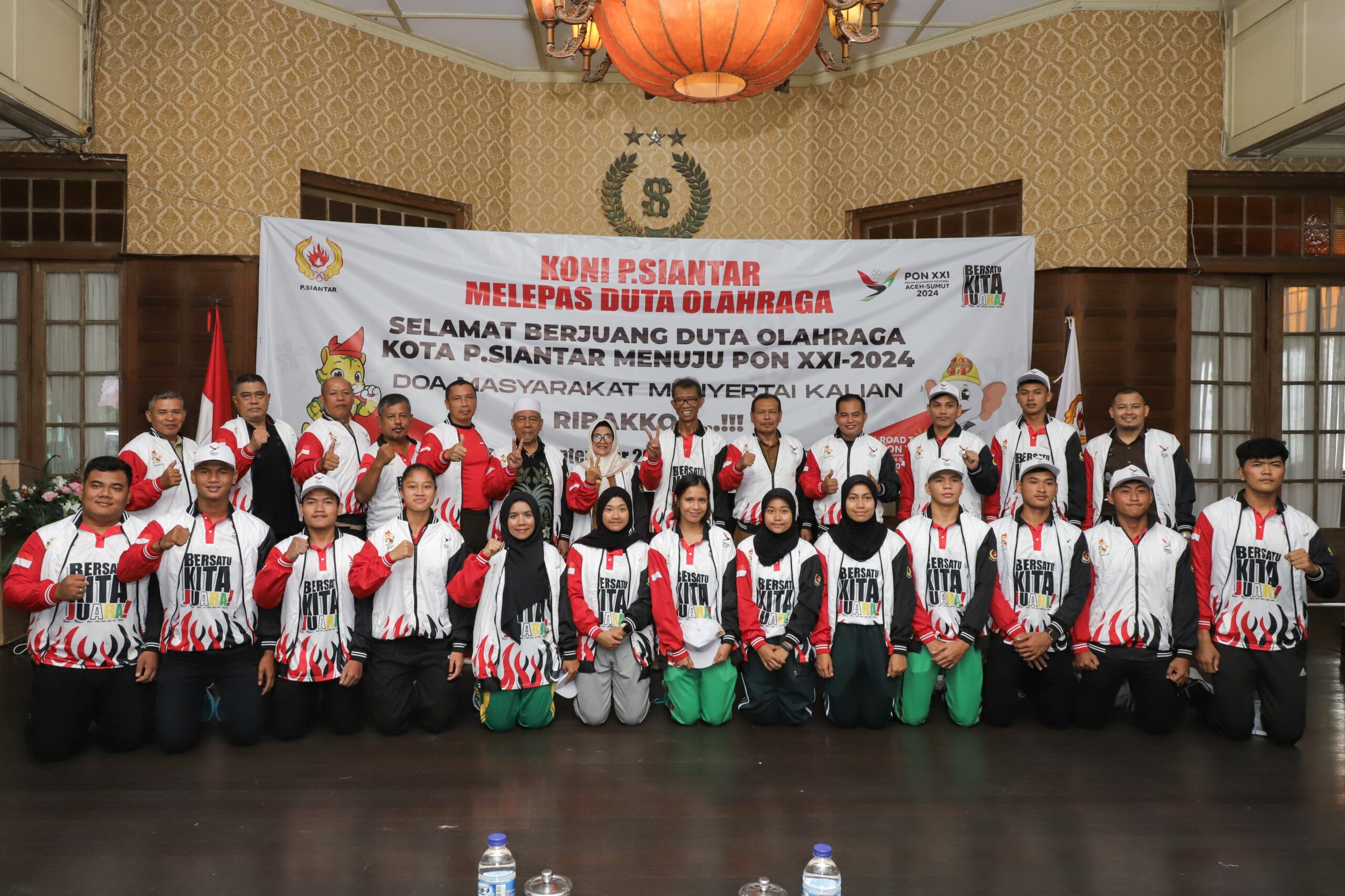 Acara pemberangkatan para atlet berlangsung di lobi Siantar Hotel, Jalan WR Supratman Kelurahan Proklamasi Kecamatan Siantar Barat, Selasa (03/09/2024).